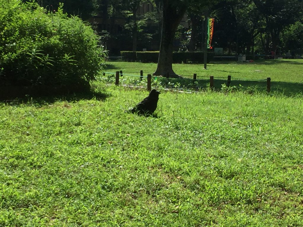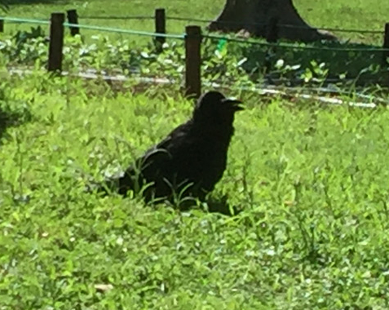 みると、芝のなかで、カラスが聴きいってる感じ(・・??)