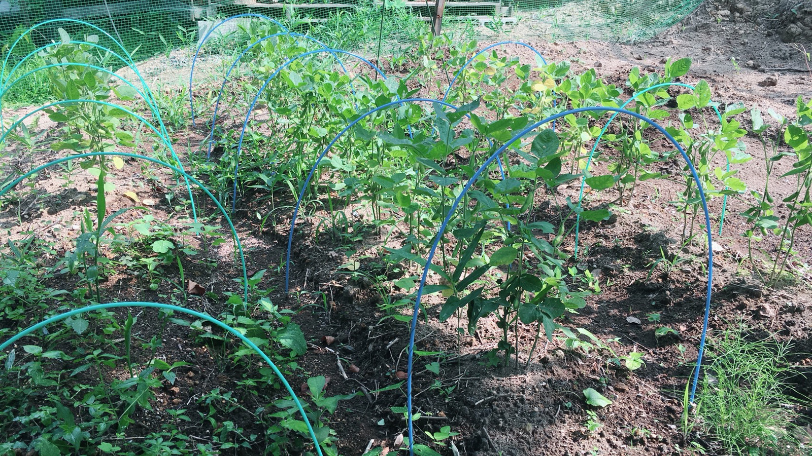 新規の場所へ、、大量に植えた枝豆は、成長が悪いなぁ,,,,