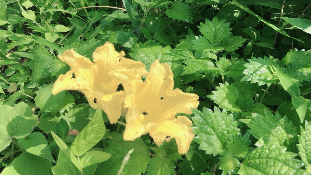周りが見えないけど、たぶん、かぼちゃの花かと。。