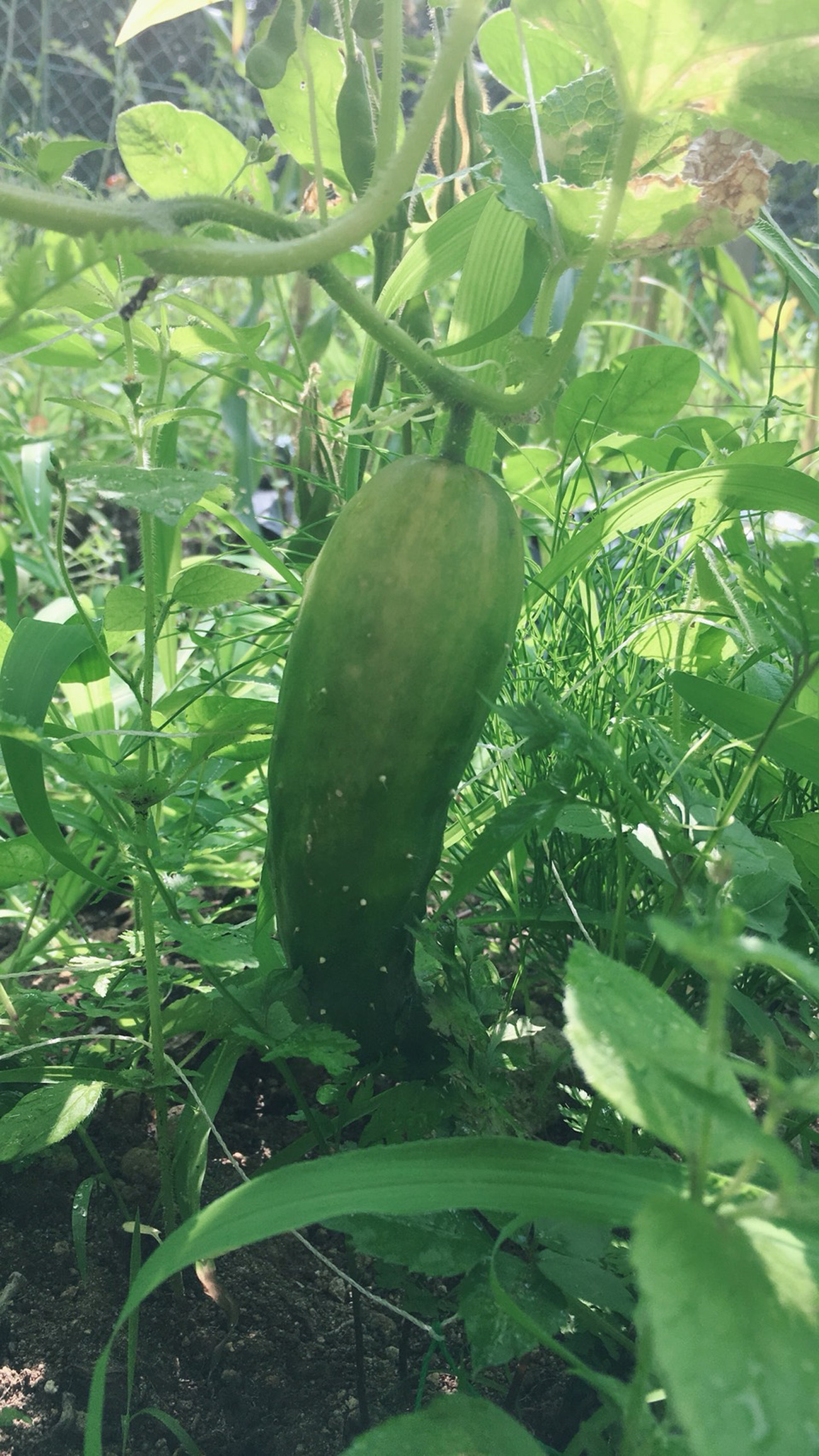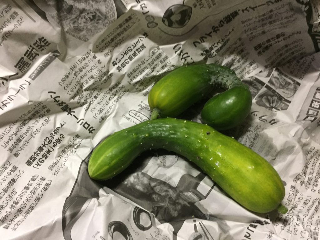 キュウリ、巨大化して、ゴーヤの失敗作みたいになってるぅ。。