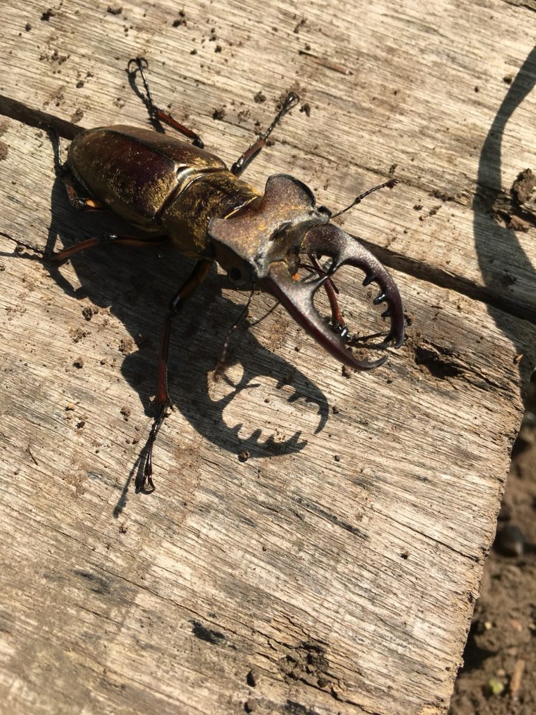 と、作業中に、ミヤマクワガタが助っ人で登場//(初来訪)(o^-^o)