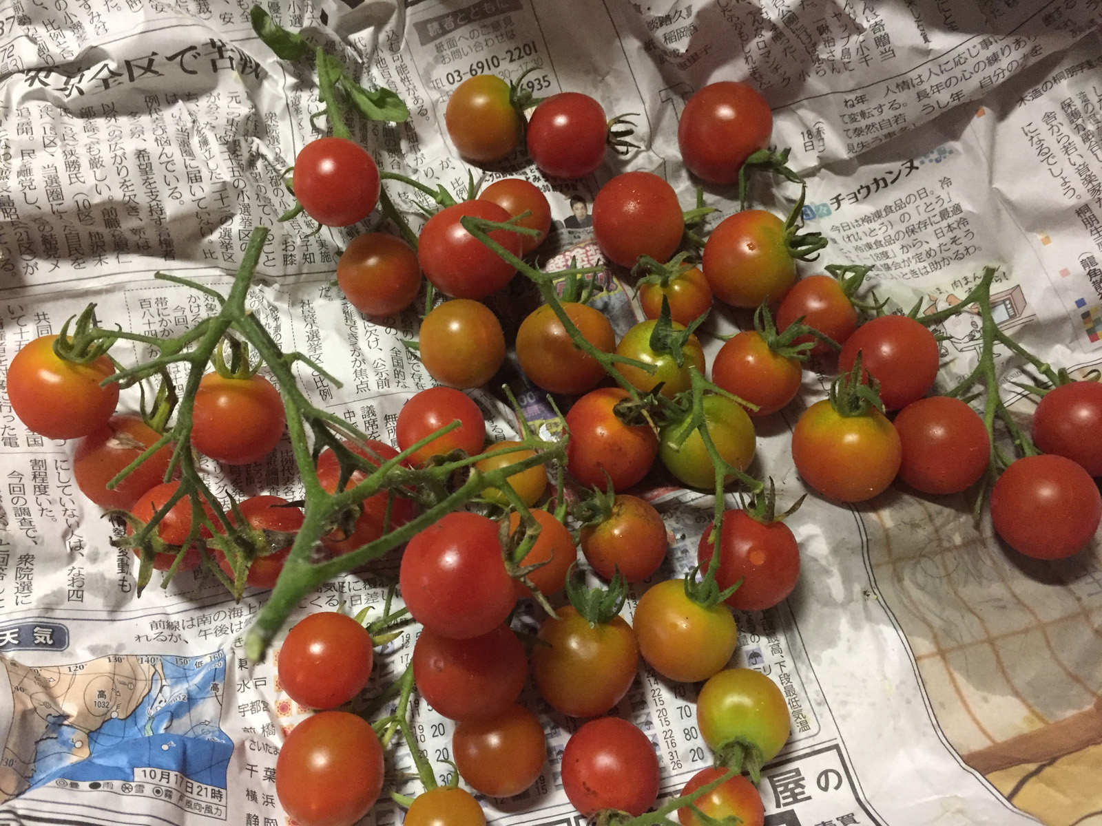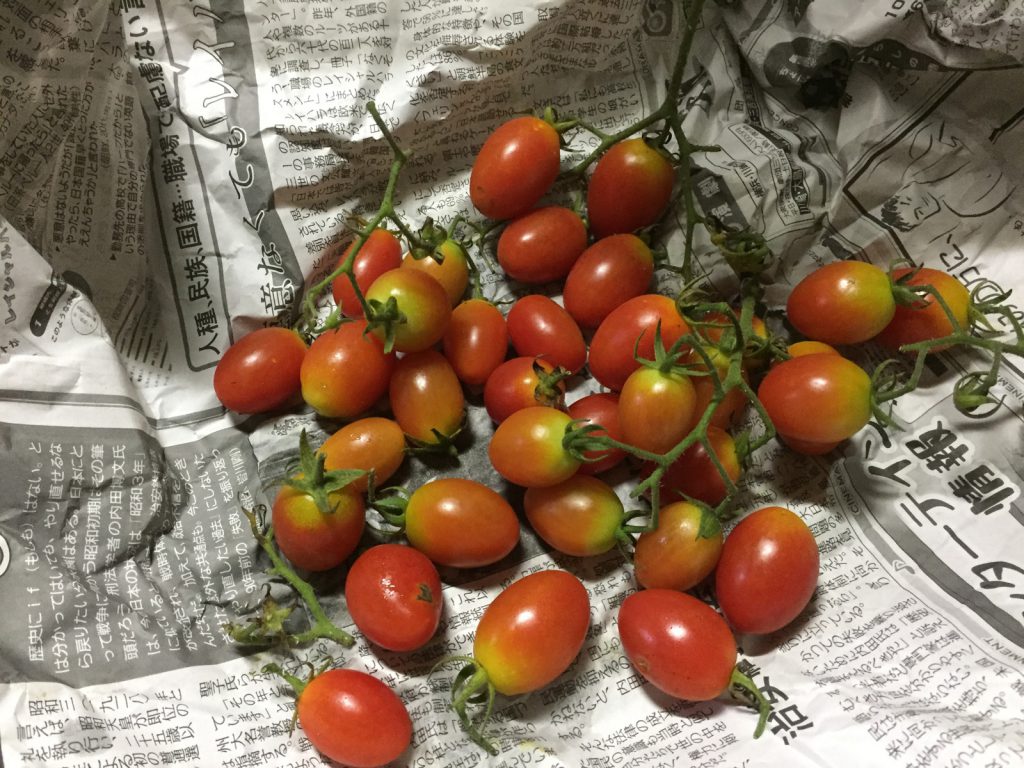 持ち帰ってっきた収穫は、トマトが2種
