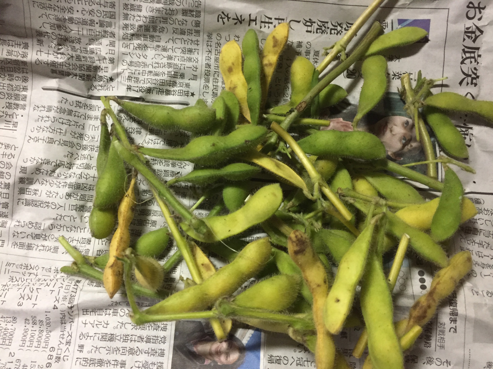 黄色くなった枝豆__かなりの小粒でも、味がしっかりしてたのだ(^▽^)/