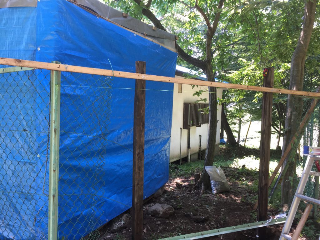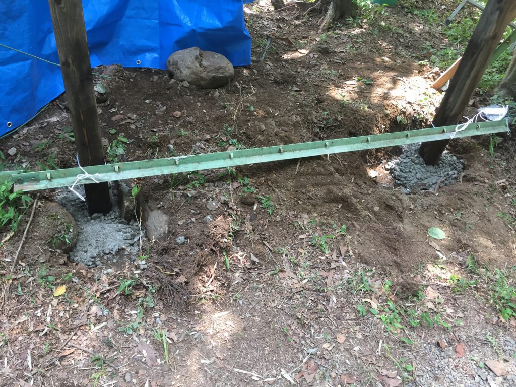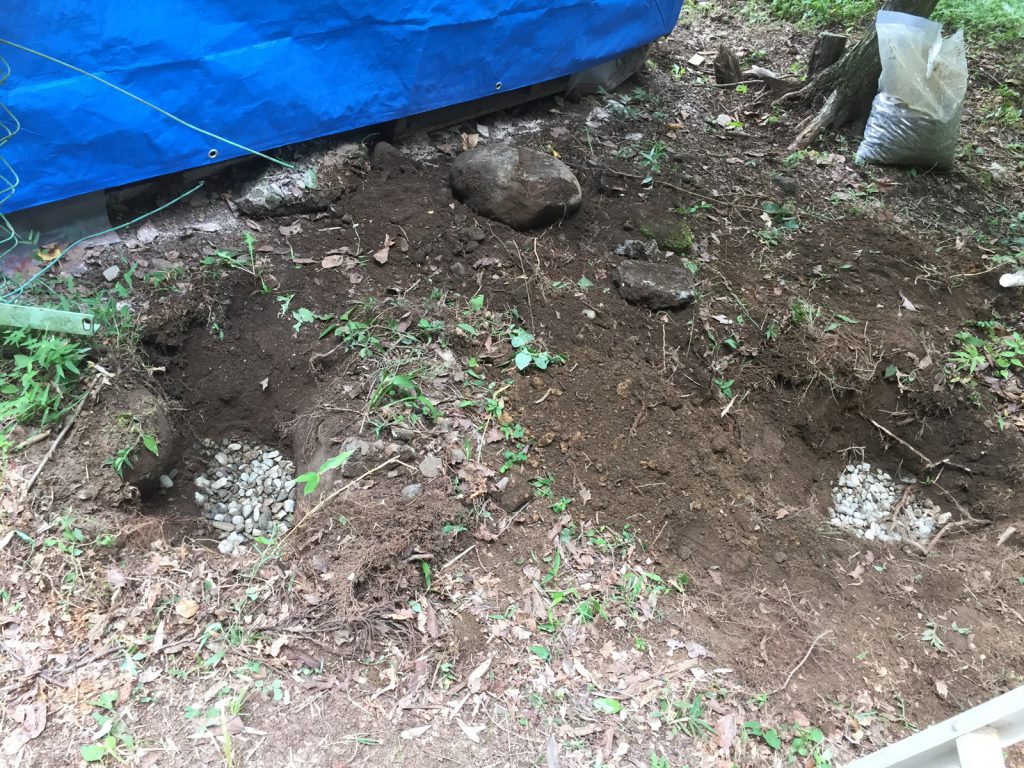 柱の土台になる穴を掘り、砂利を詰めて、