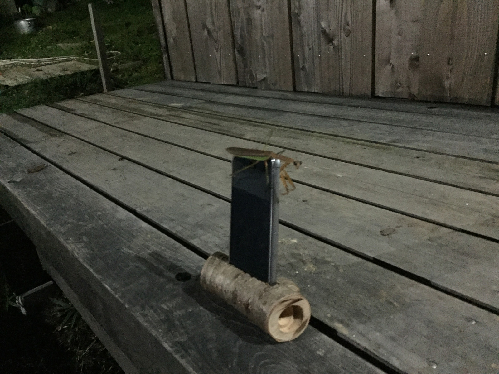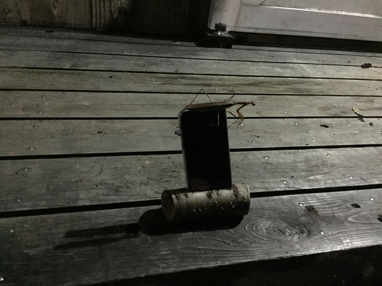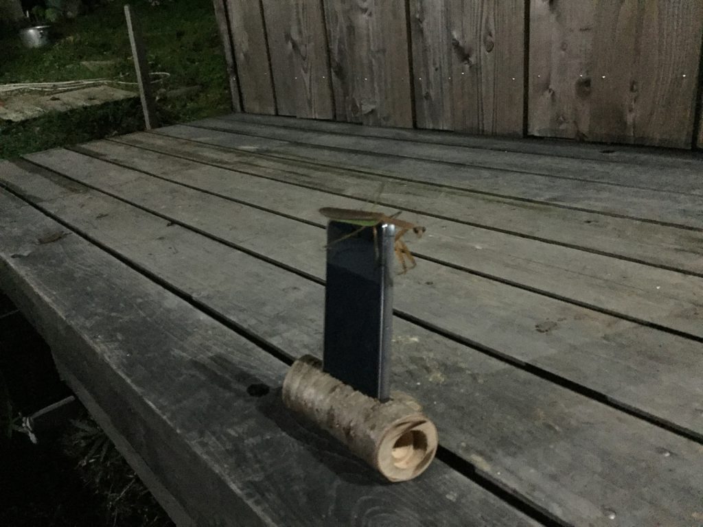 夜、ん?来訪者__カマキリく〜ん(⌒o⌒)