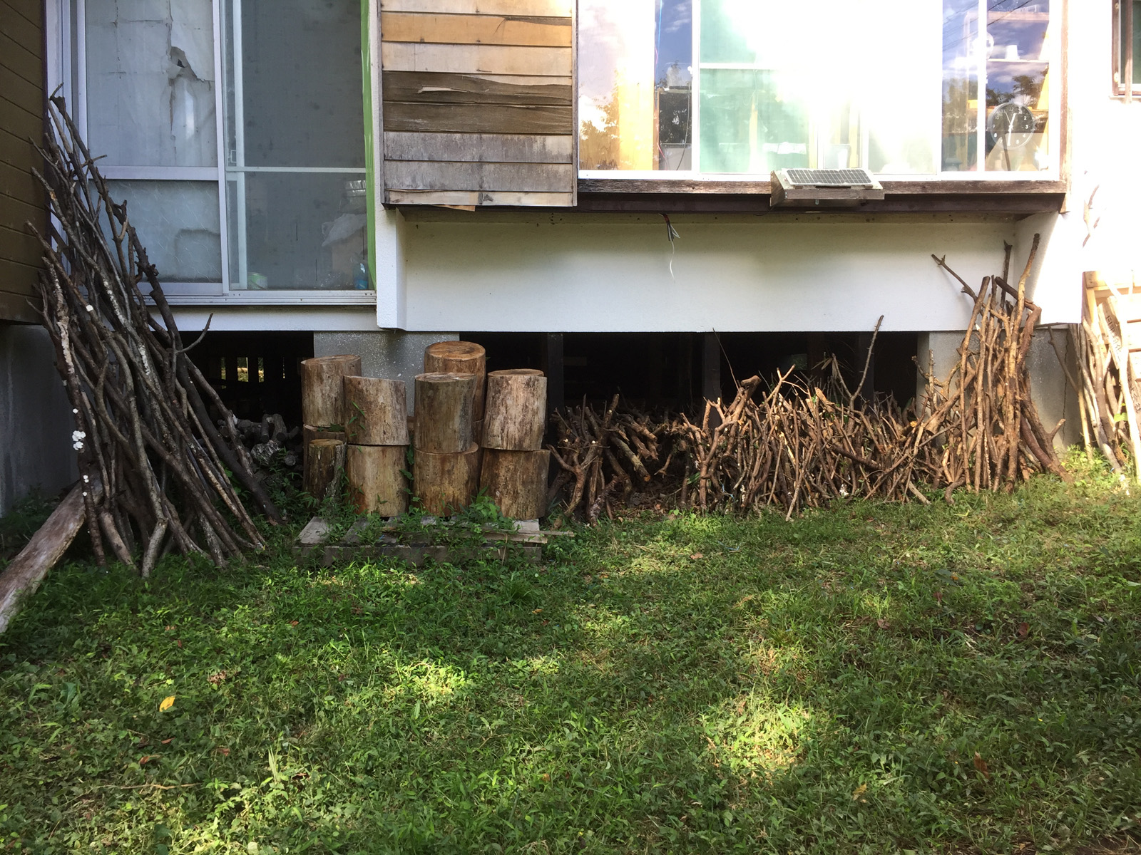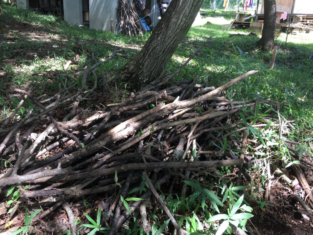 あまりにも、ジメッてて、キノコだけ繁殖しそうだし、( ̄ヘ ̄)これから焚き火もするしねッ。