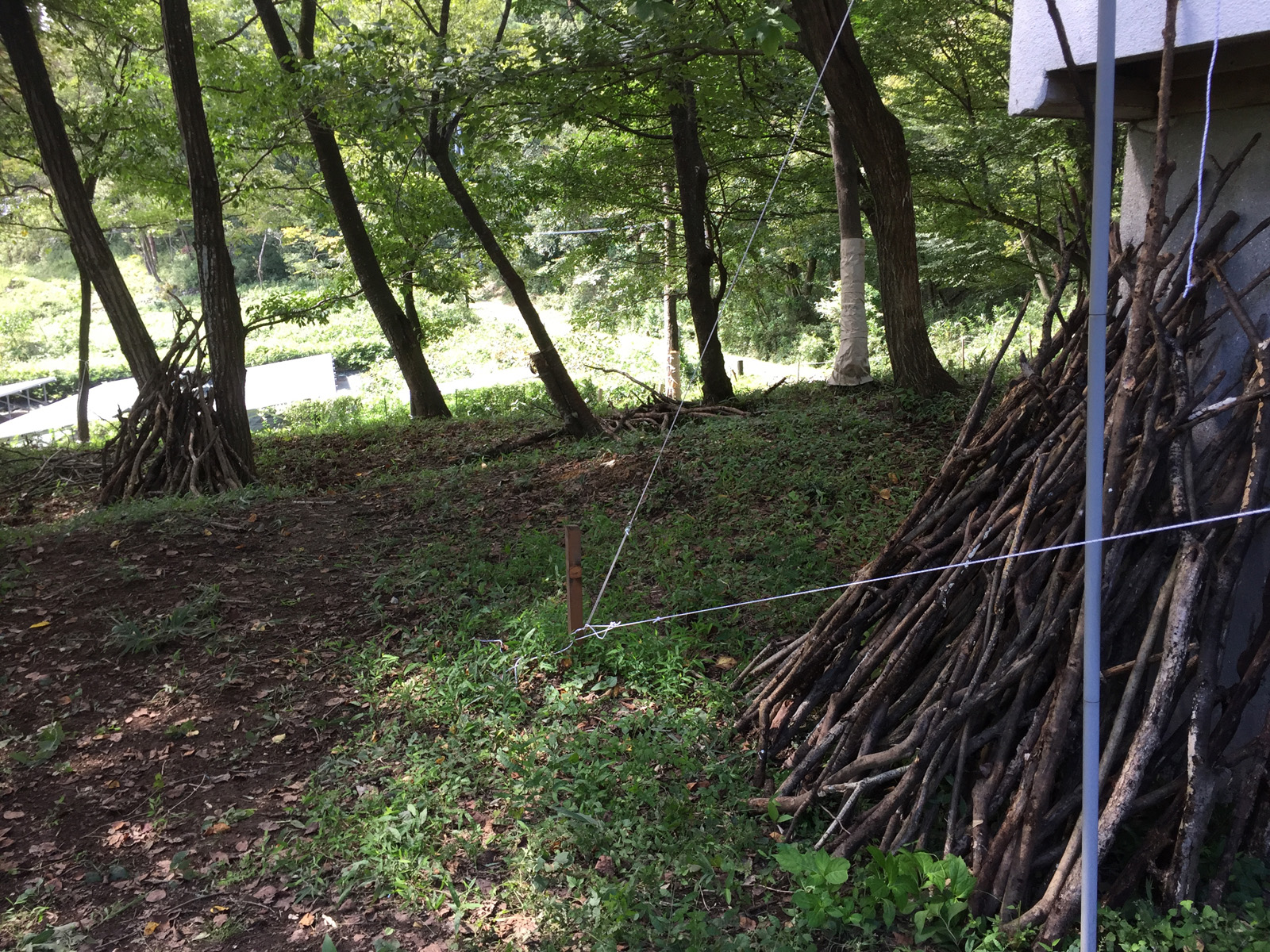 長さ、太さ、硬さなどに分けて、あちこちに立てかけて__