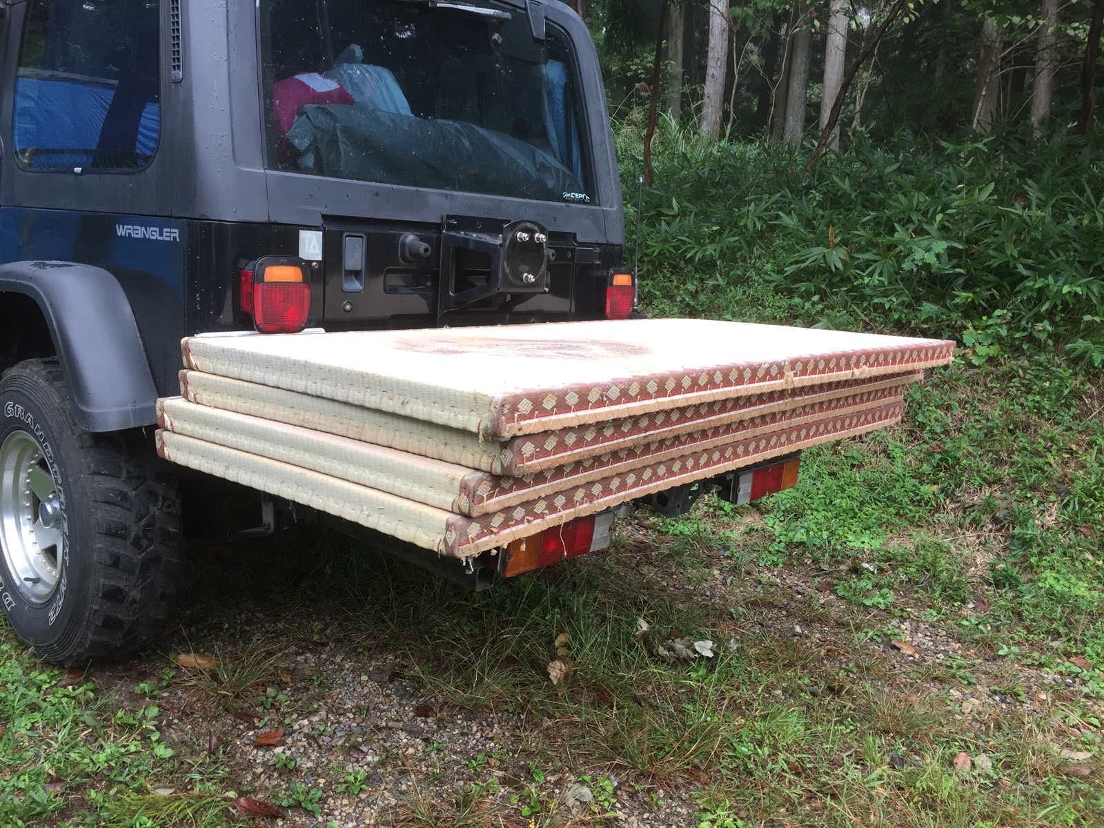 この畳、バラして畑の堆肥にしようと考えてたけど、見たら、使えない材質らしく、、(ー。ー)