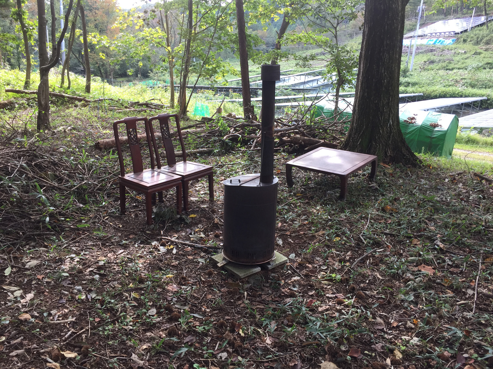 「バラして、燃してぇ〜!」と運び出された古家具、、、(^▽^;)なんで、ココ?