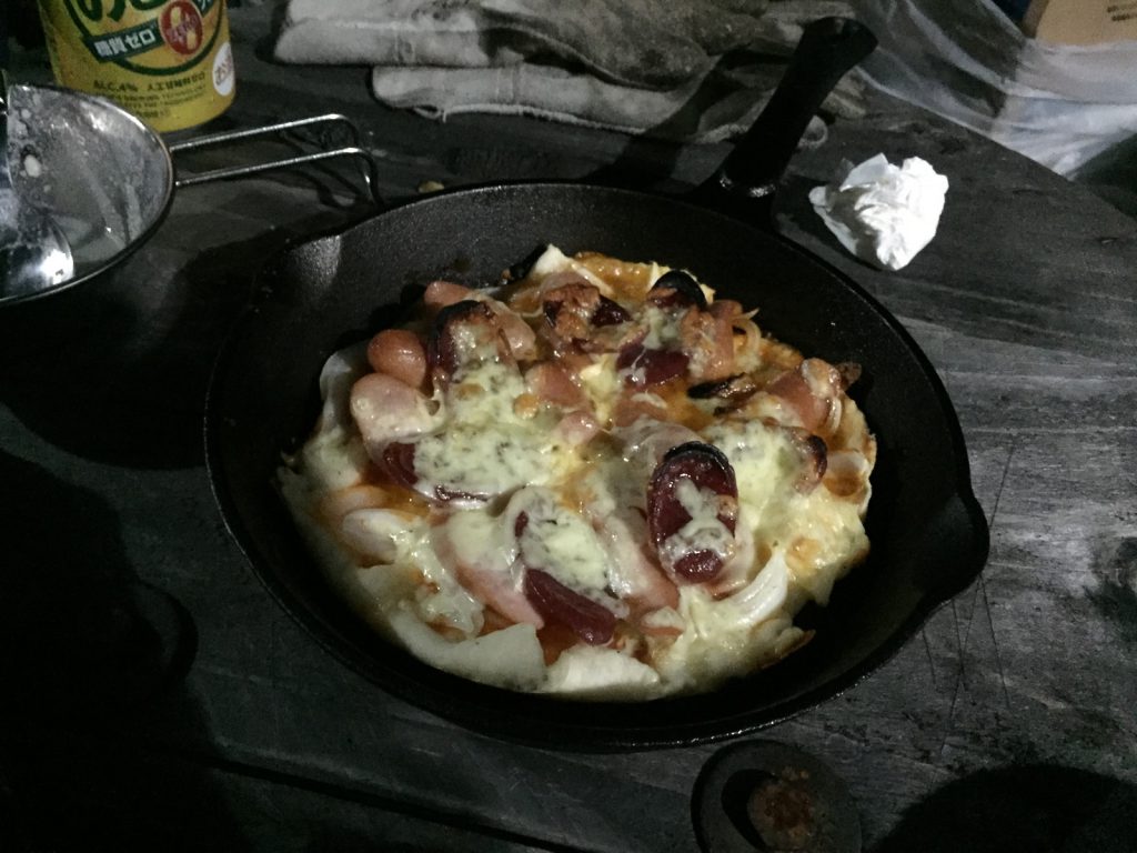 夜、久々に作って持ったきたピザ生地で、前回失敗したピザパンでトライ!!