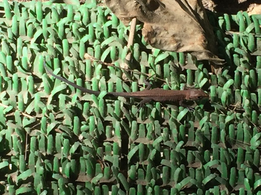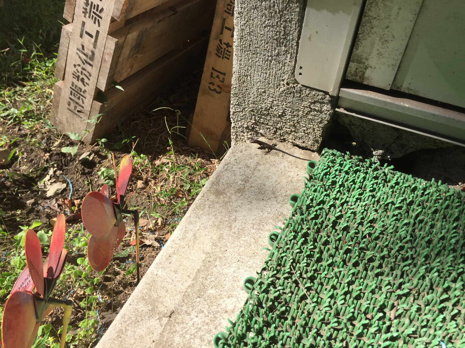朝一で、ダン君(カナヘビの呼び名)のbaby??が来訪。。5〜6cm。