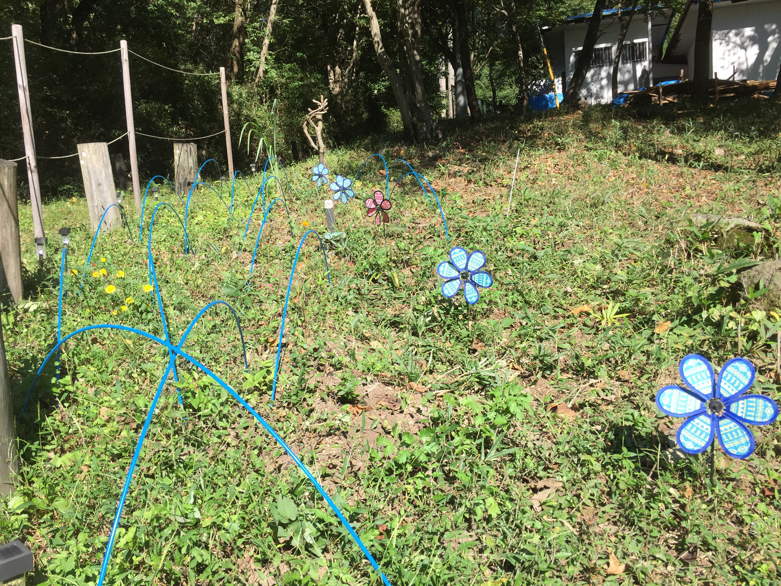 真ん中のブルーは、接着剤が中に入ってしまい、回らない風車になってしもた><