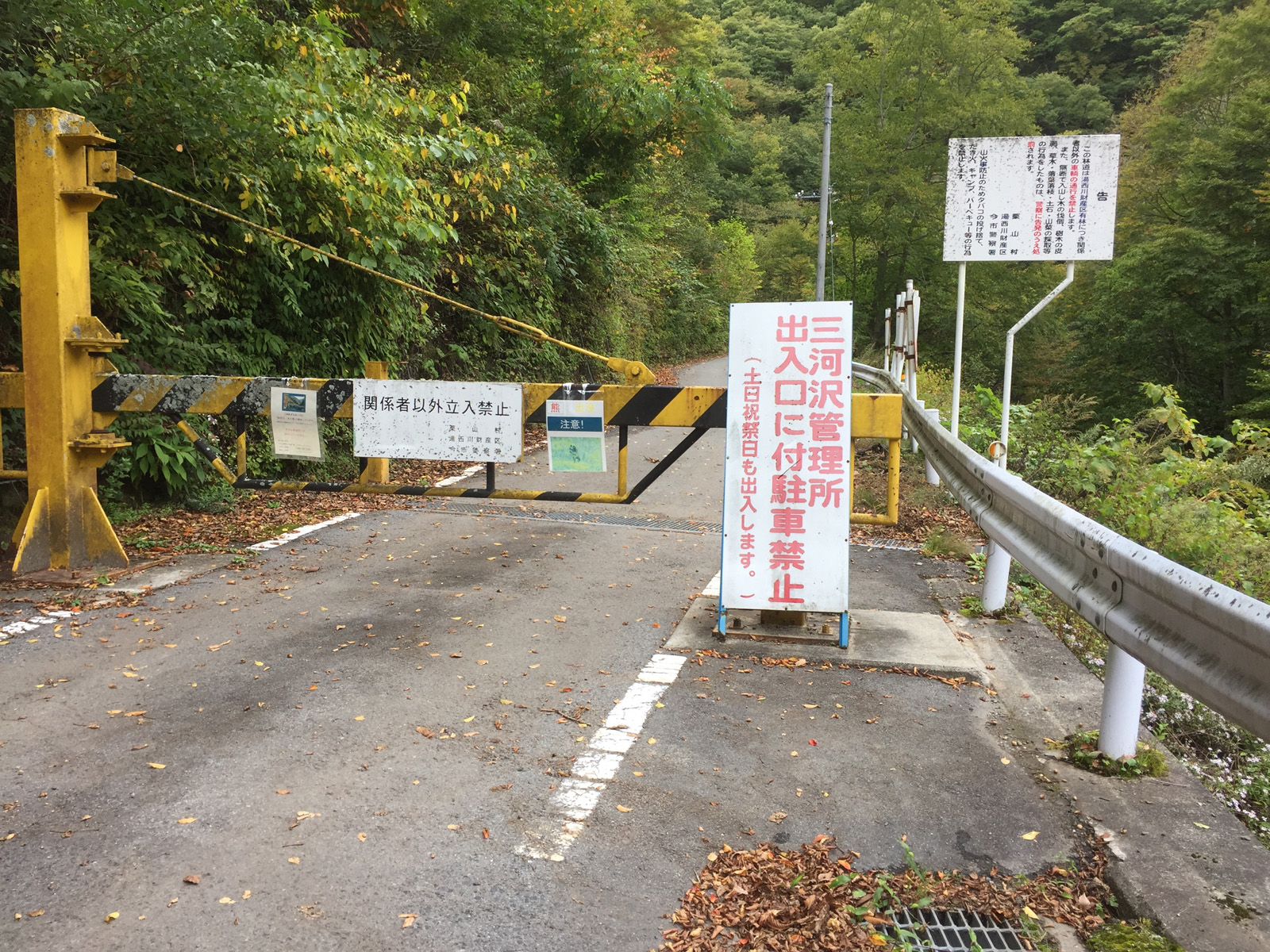 三河沢ダムの入り口、、これまた立ち入り禁止かぁ、、。