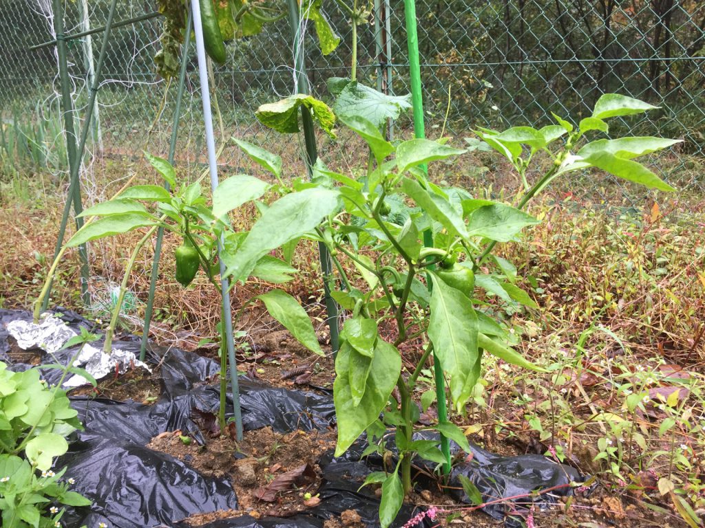 なんか、ピーマン、大きくなれてないけど、実がついてるんだよね…