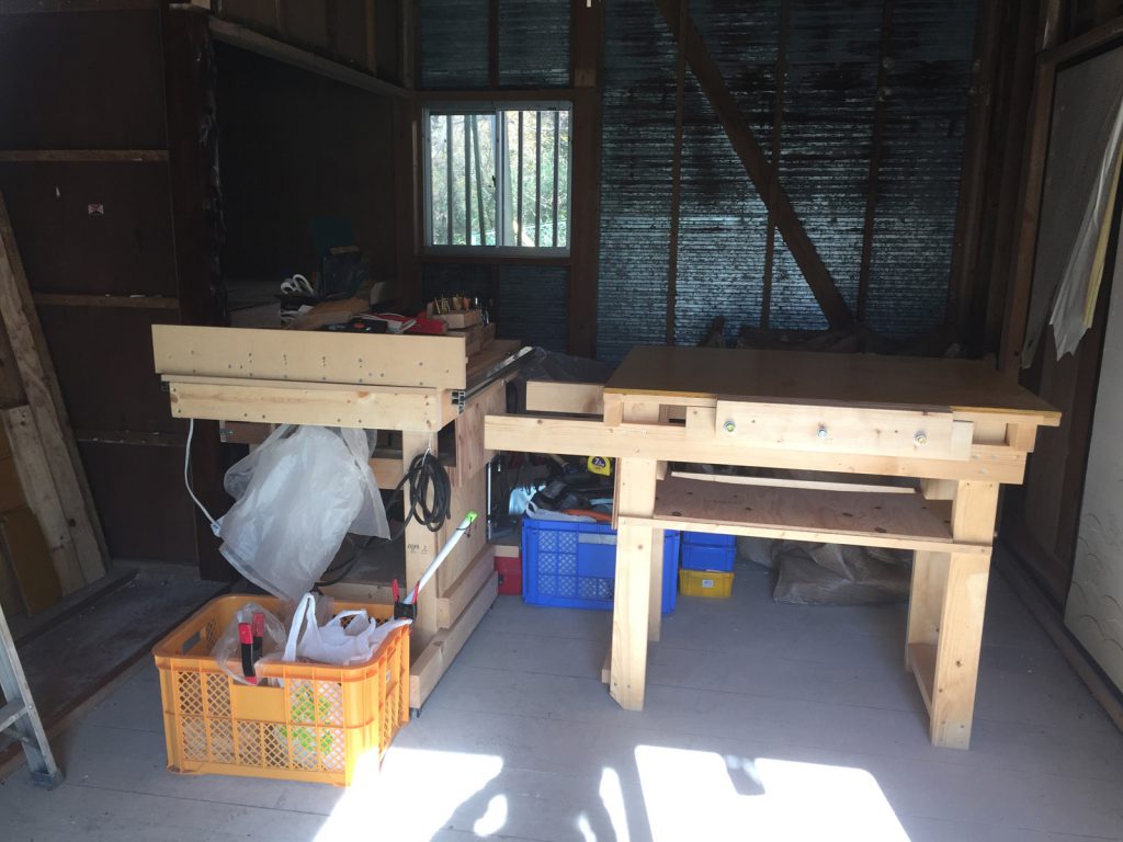 とりあえず、作業台や工具一式を手前に部屋へ移動__。
