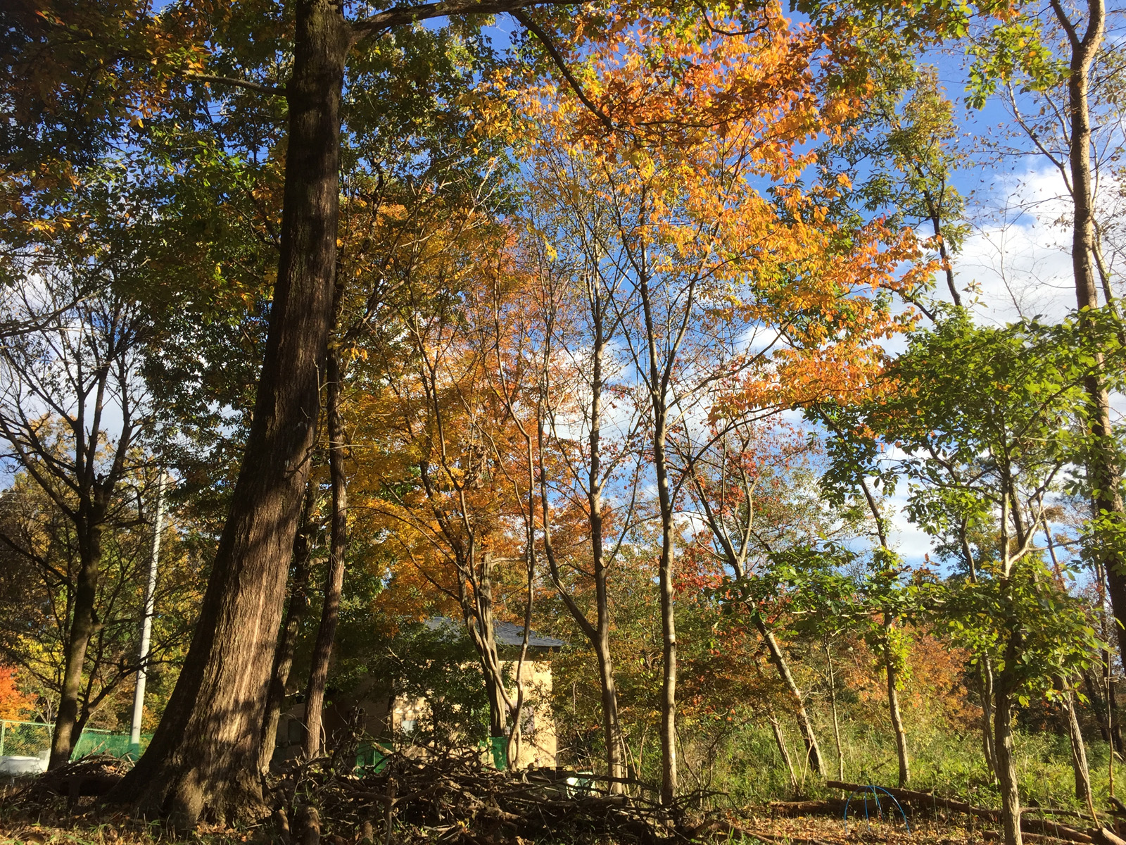 木々も一気に紅葉をしてて、、、この屋根の上は、もう初冬状態,,><