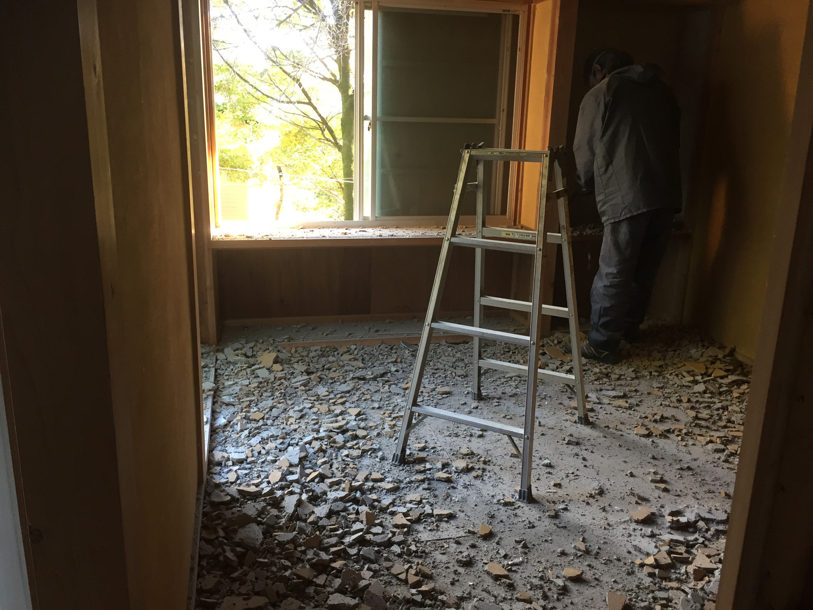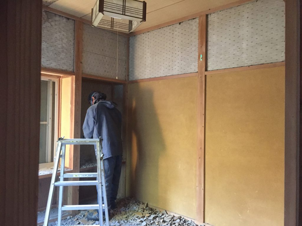 katsuは黙々と壁解体___。