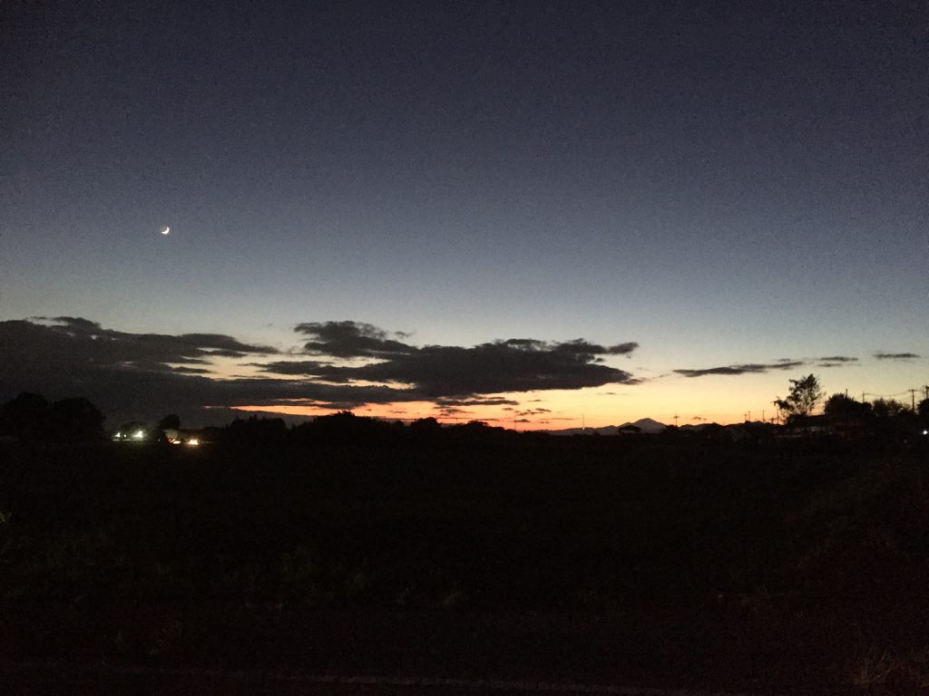 早めに温泉へ向かう途中___夕焼けと三日月が(*⌒∇⌒*)