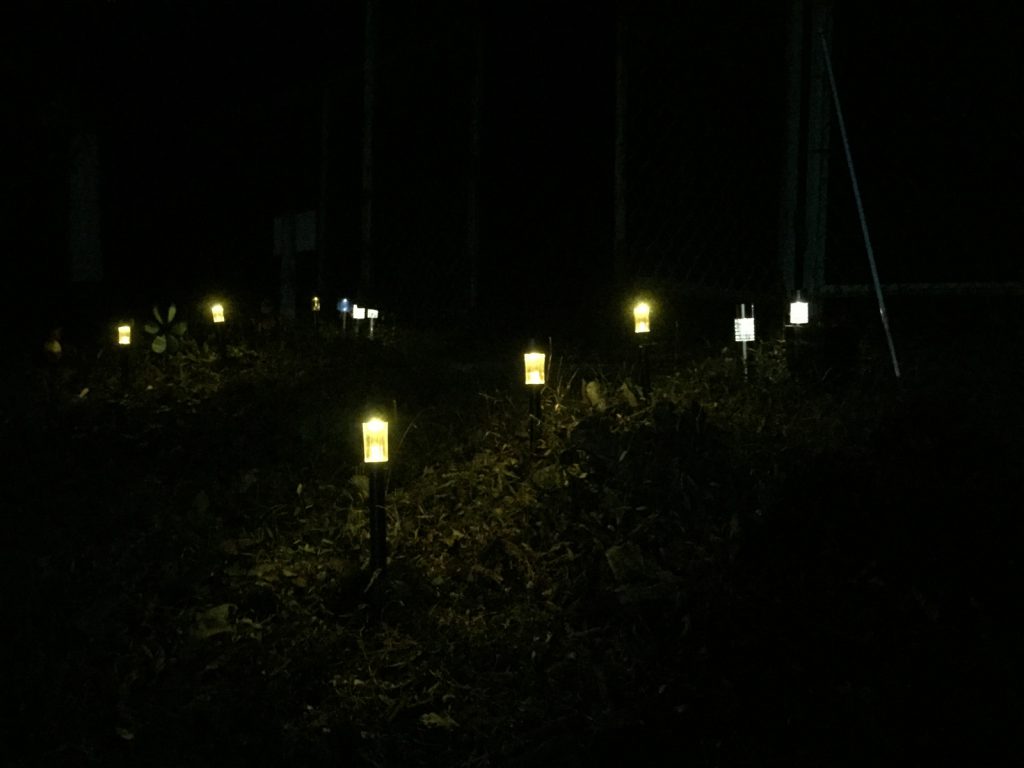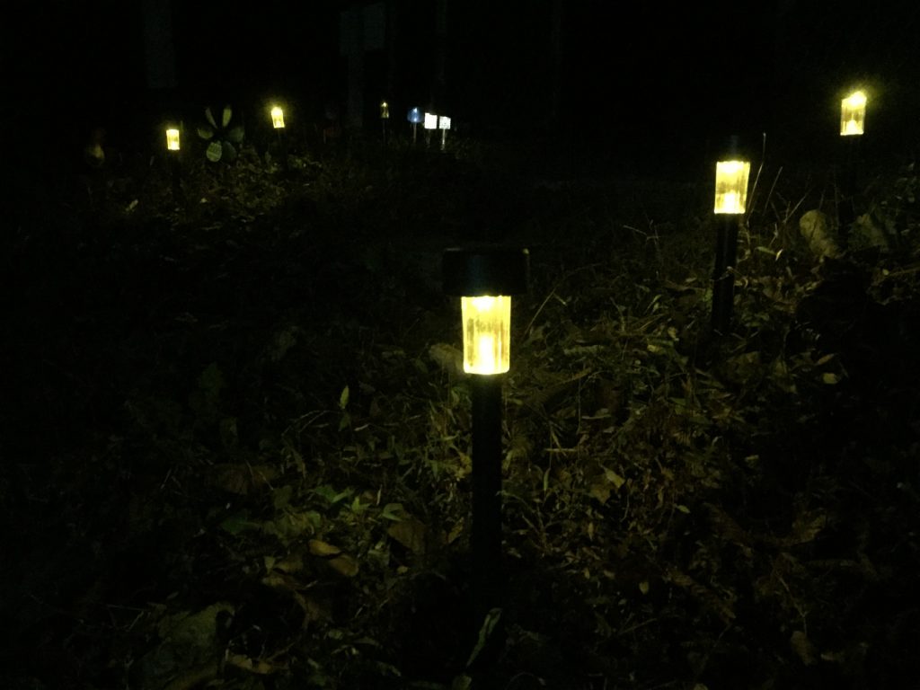 入り口に新しいソーラーライトを。。(黄色もの)
