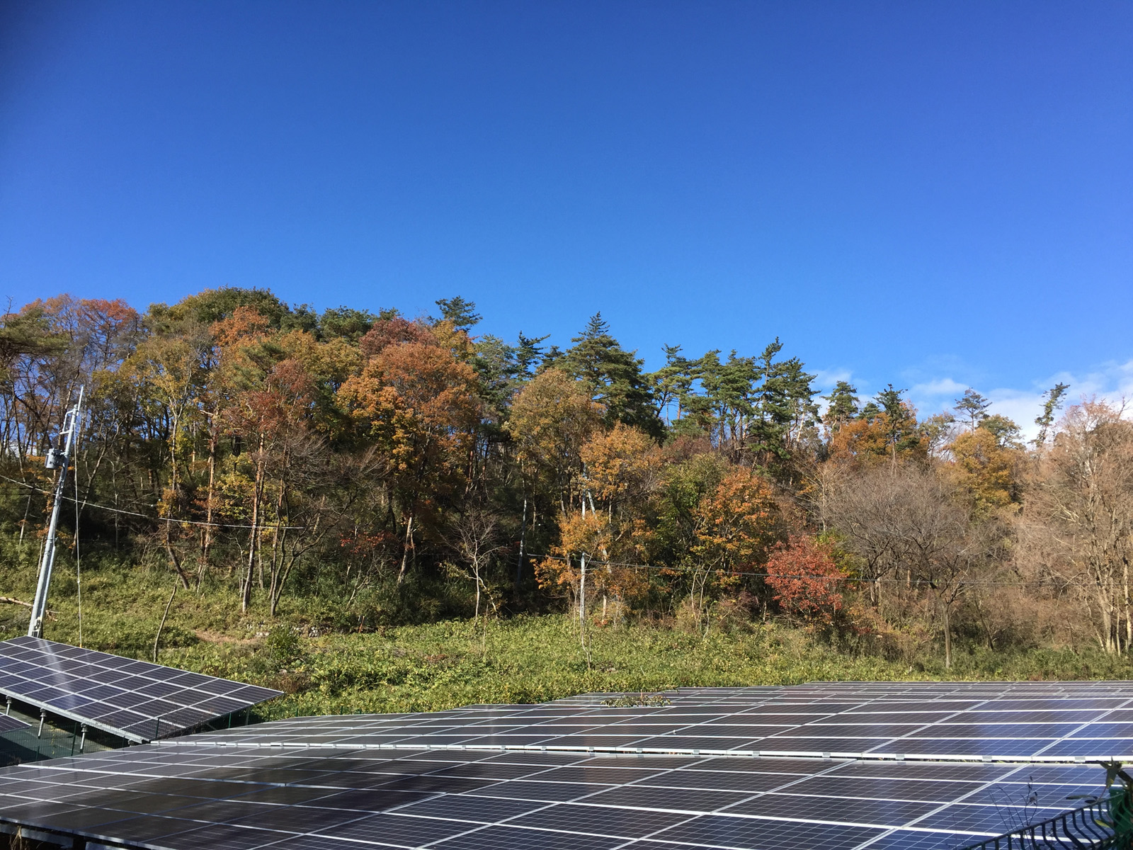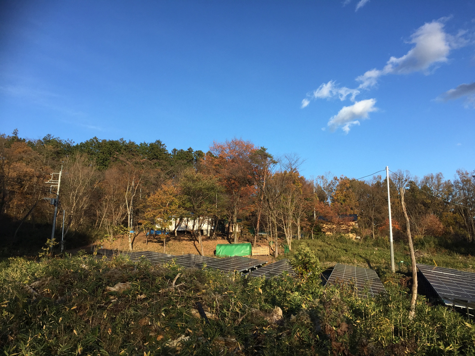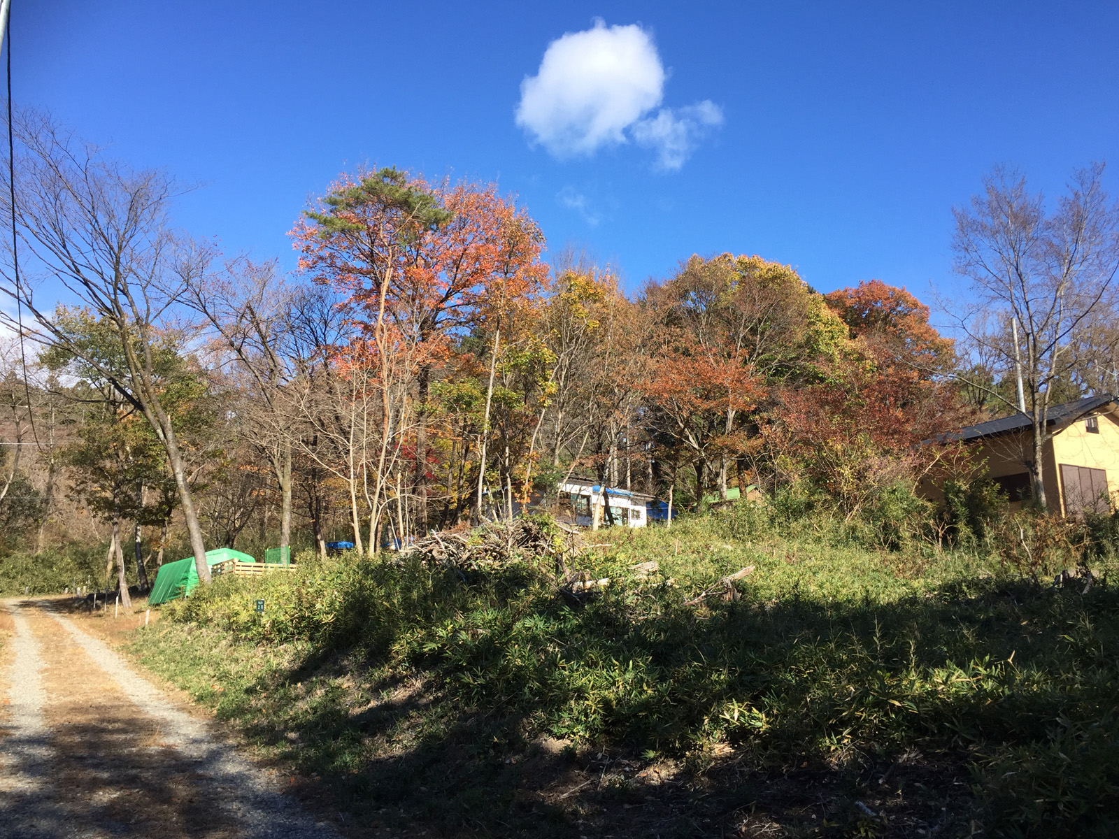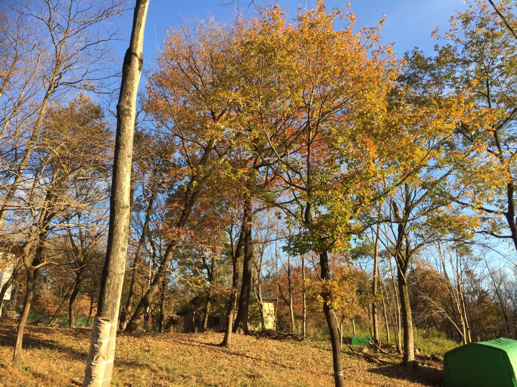 陽が傾き始めて、高台からの現場___やはり、赤の紅葉が少ないなぁ、、、、