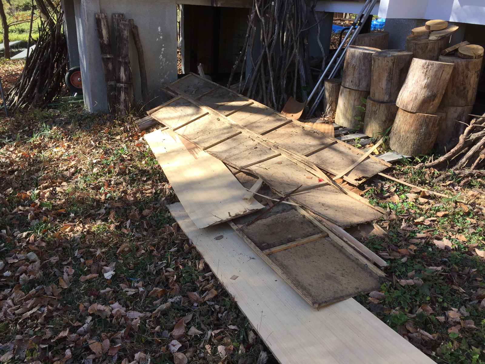 とりあえず、最初に解体した奥部屋、下の隙間をふさぐ//(  ̄っ ̄)