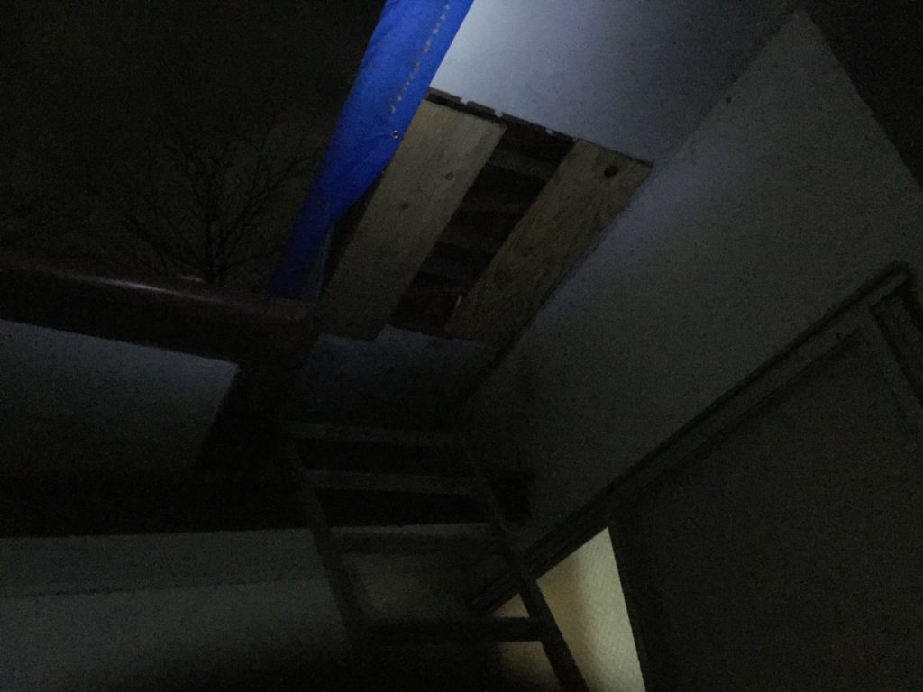 脚立に登り、見ると、屋根裏を走りまわって、、( ̄□ ̄;)!!