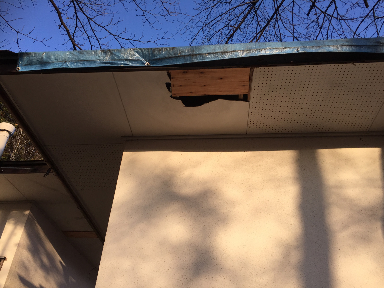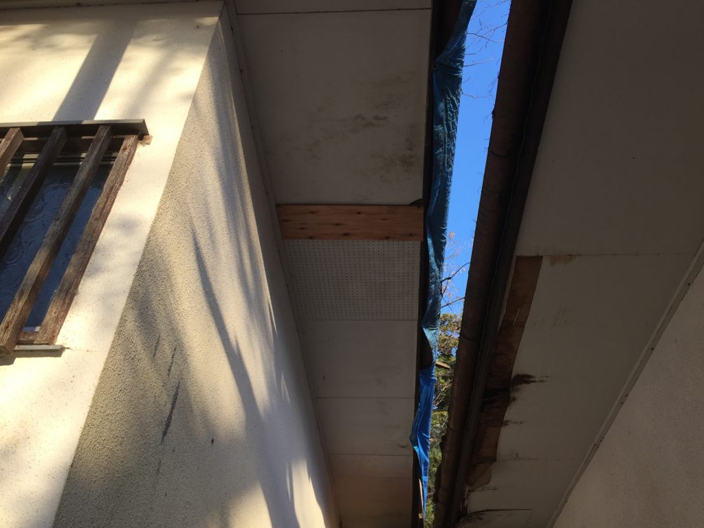 夕飯どころではなく、急遽、穴が空いてる軒天をふさぐことに//