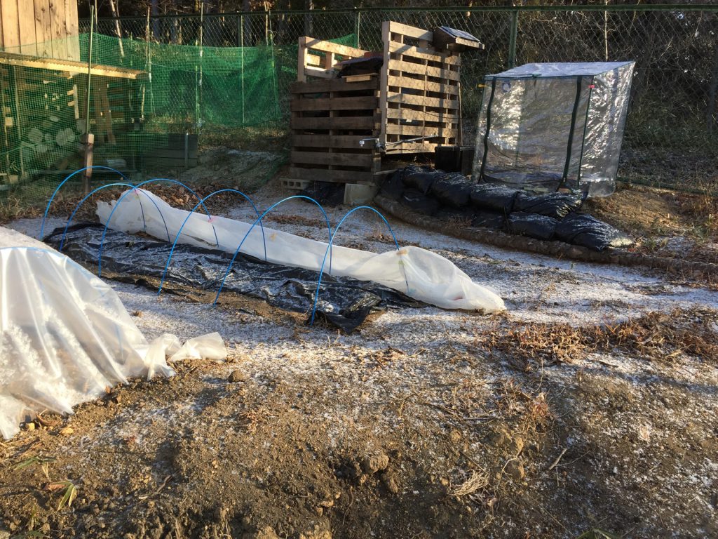 畑もうっすら雪化粧//