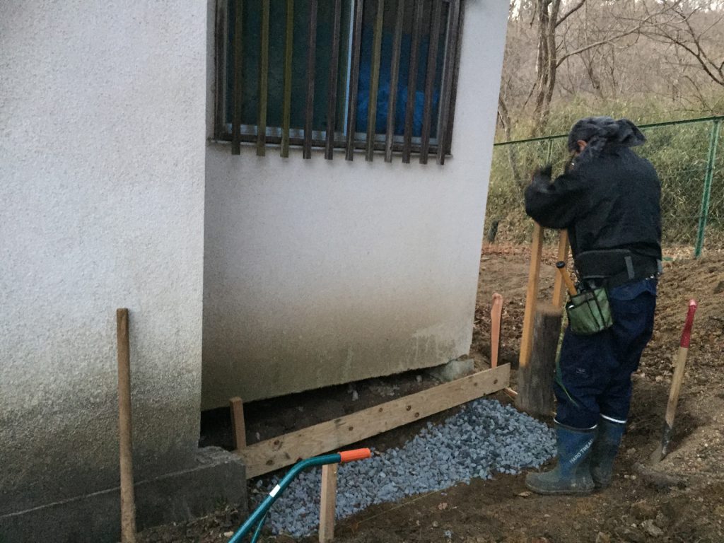 で____今日はこの拡張部分を掘り起こして、、、砂利を///