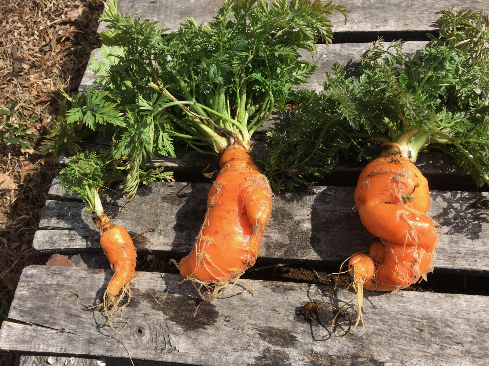 そして3寸人参が掘り起こしてみたら、、こぉ〜んな太く、しかも何このツイスト人参(≧◇≦)