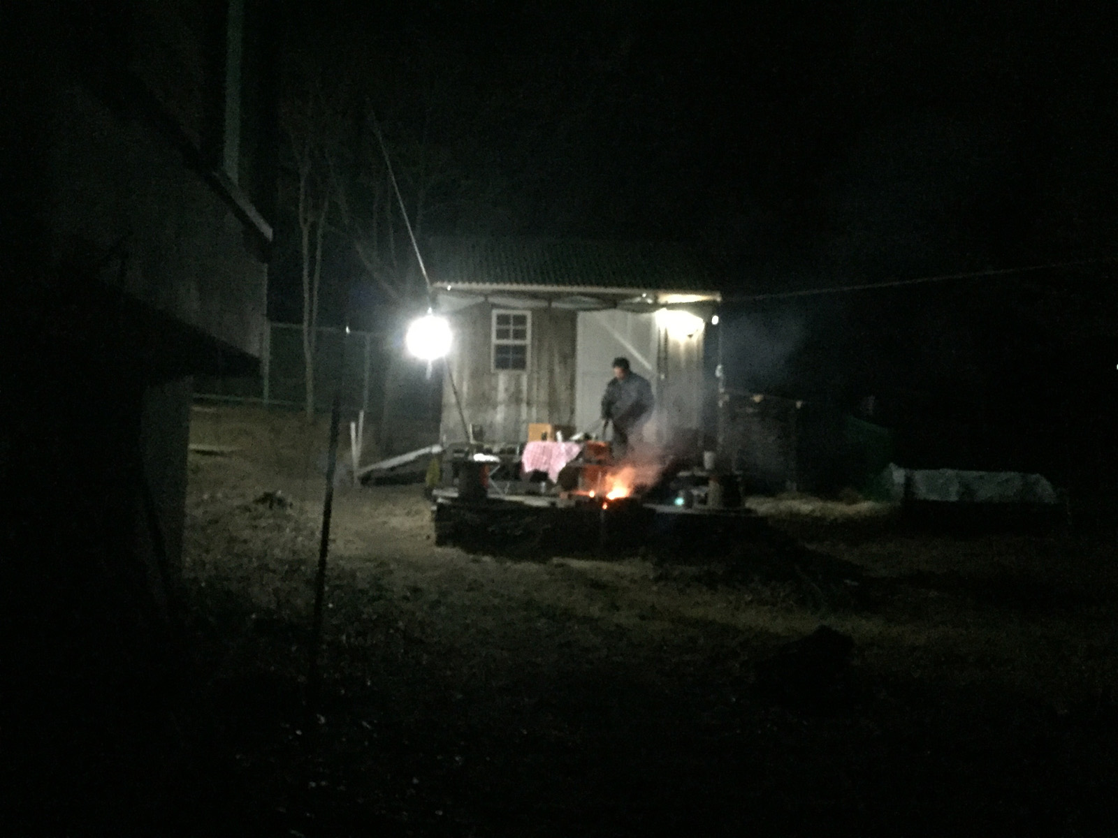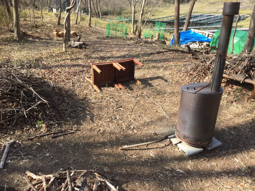 柱などが全て、再利用するために、防腐剤を塗って、一段落_、_。