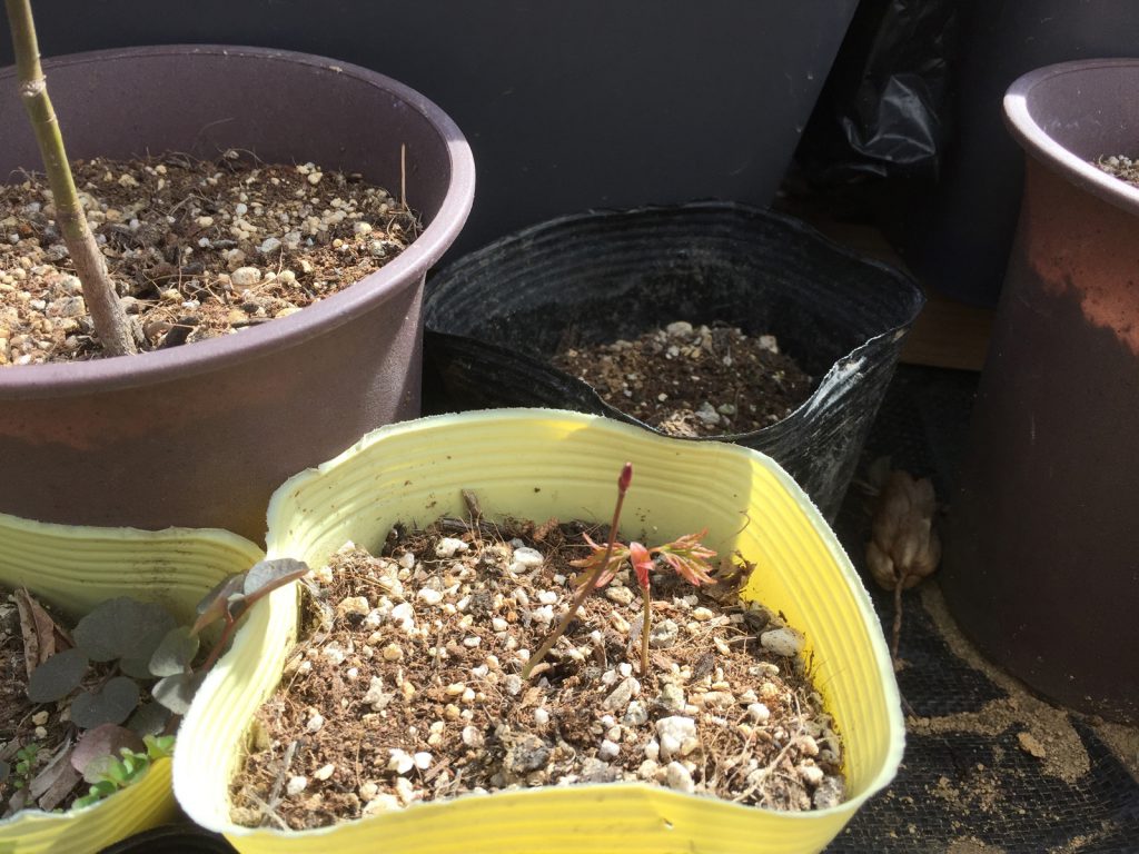 ついに芽が(●⌒∇⌒●)なので、大きい鉢に植え替えだぁ//