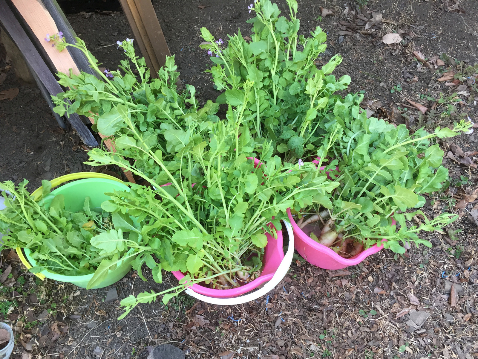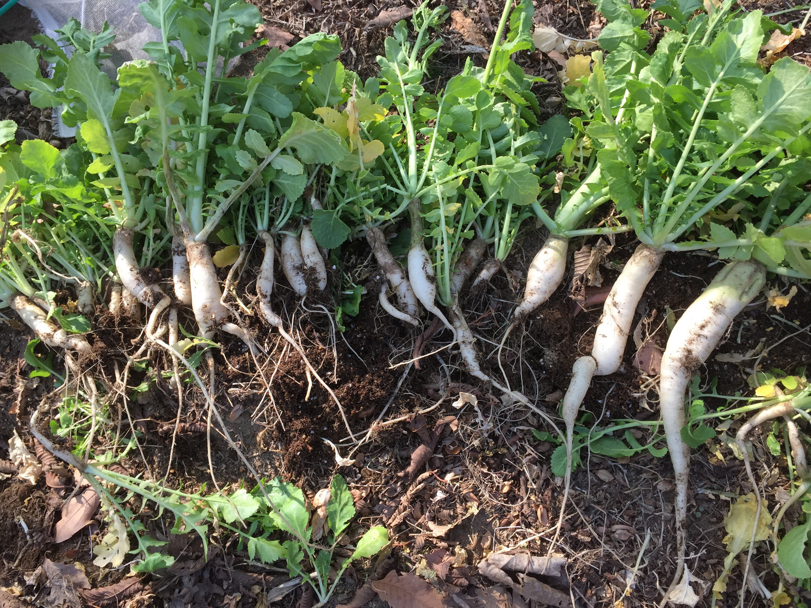 葉大根、収穫してみたら、、大根になってるぅ//サイズはバラッバラっだけどね..