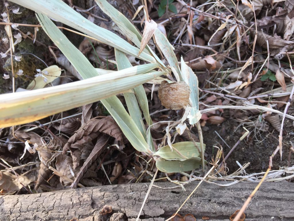畝づくりの途中でカマキリの卵発見。。木の下へ置いとこ。