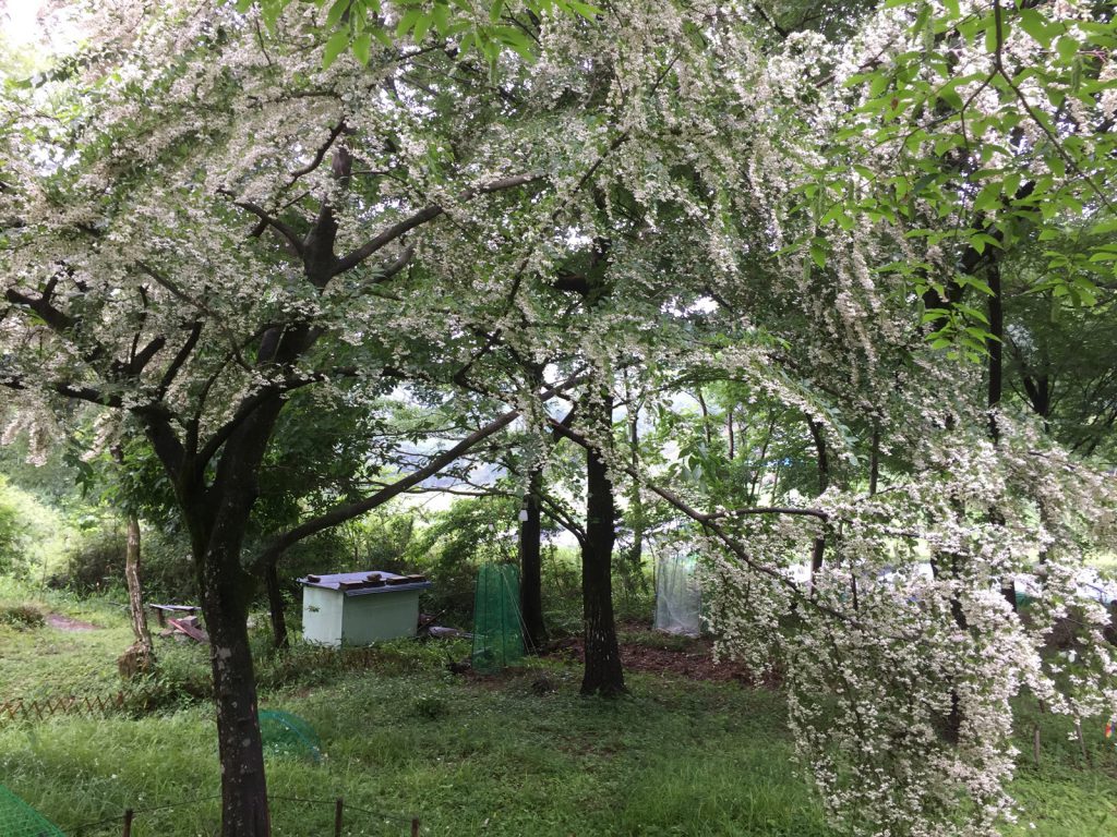 連日の雨でこの木、、枝垂れ桜状態(・・;;)