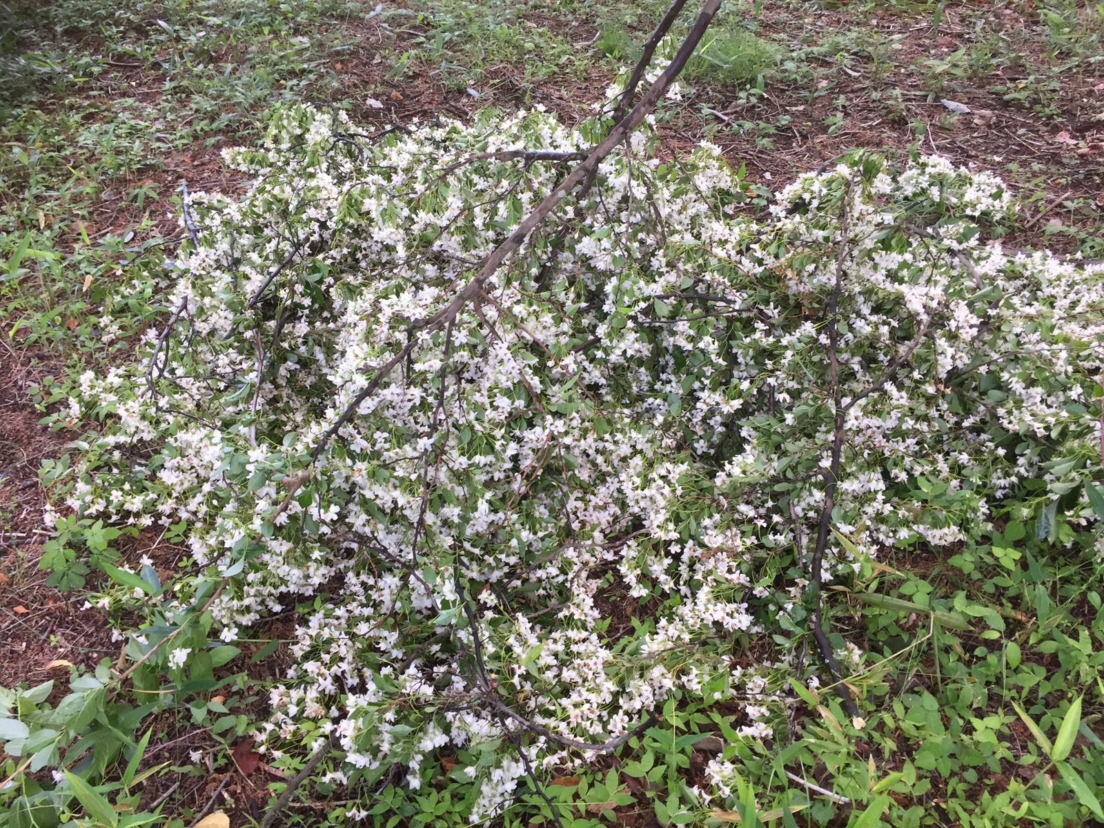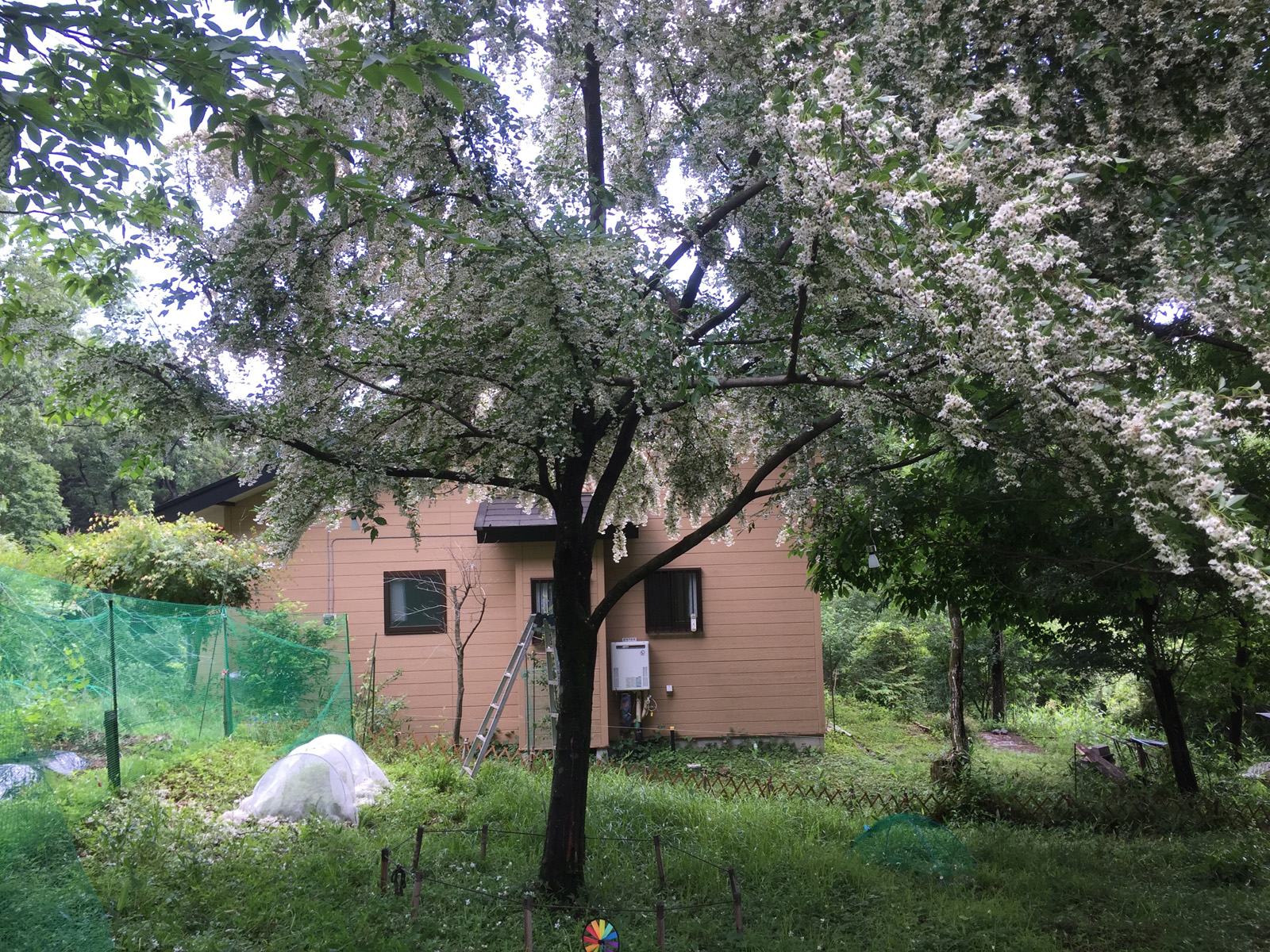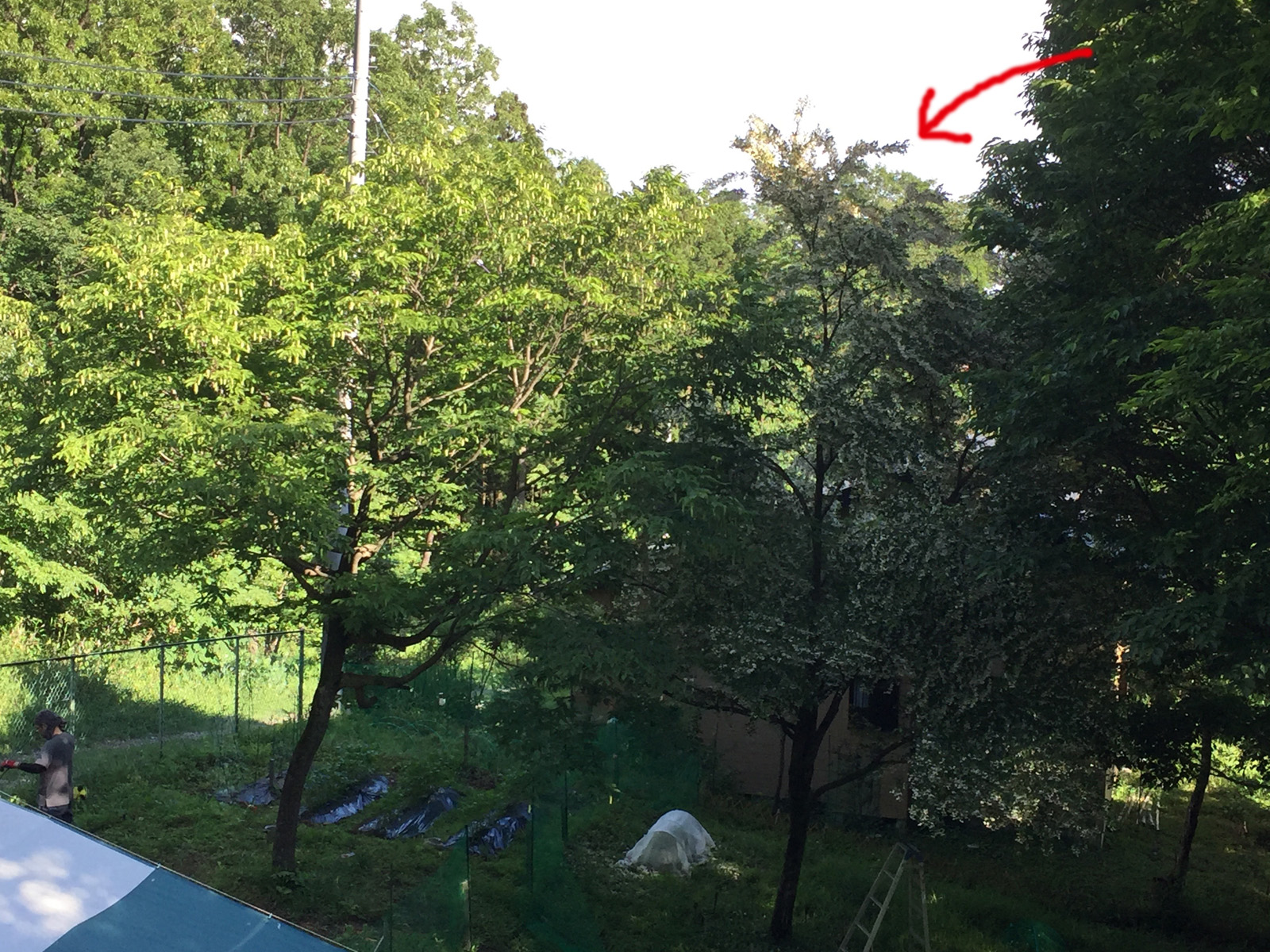 昨日剪定したエゴノキが、また下がり始めて、カッパ隊で切り落とす。。