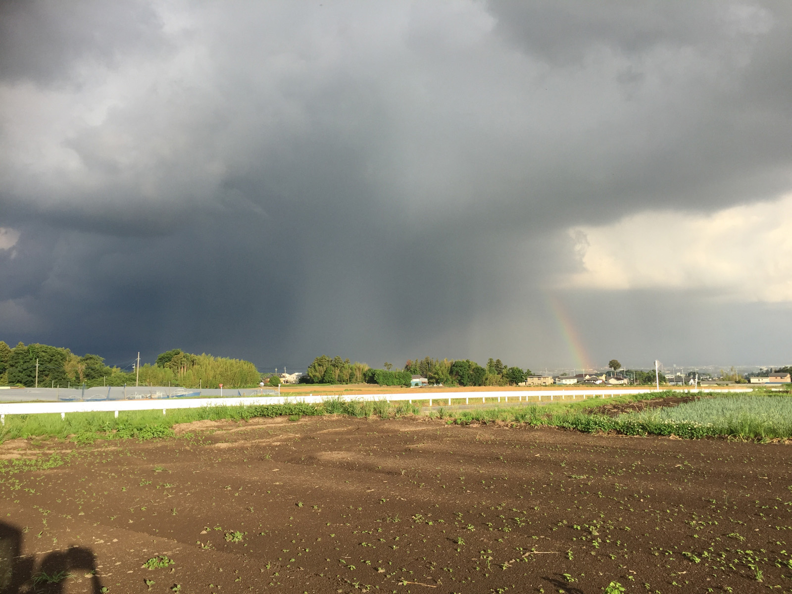 pm5:50 温泉へ向かう途中、南側の太田市方面、すごい雨雲に虹だぁ〜(o^∇^o)ノ
