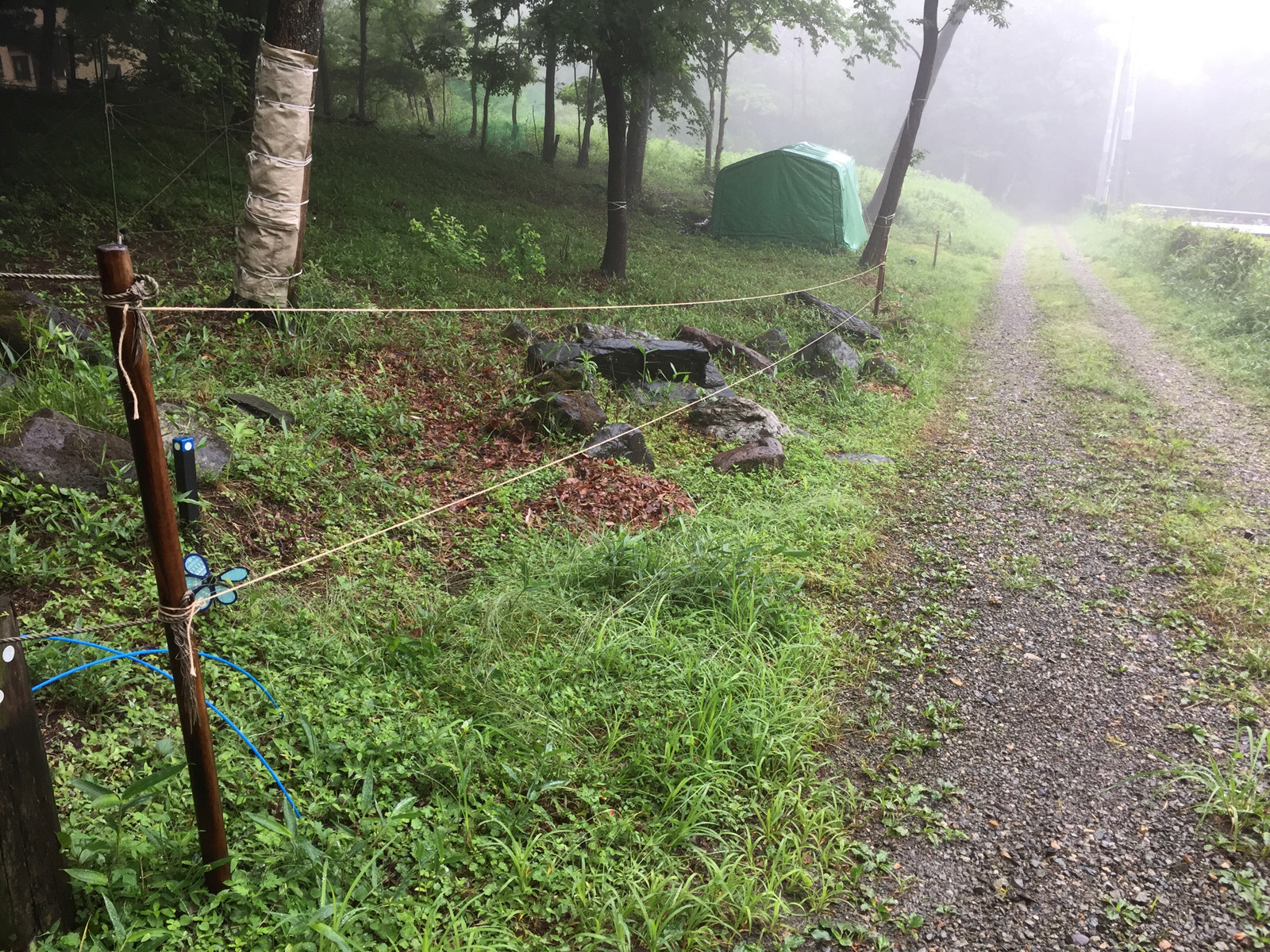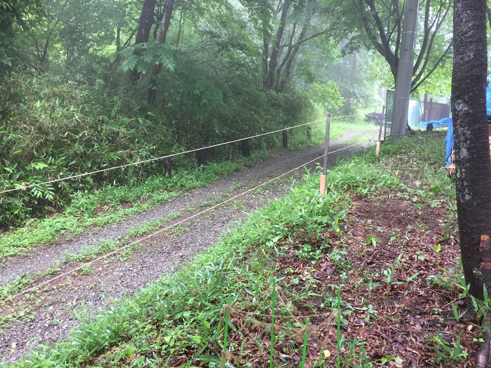 前からやりたかった、鹿対策の柵<これだけで、感知するみたい>