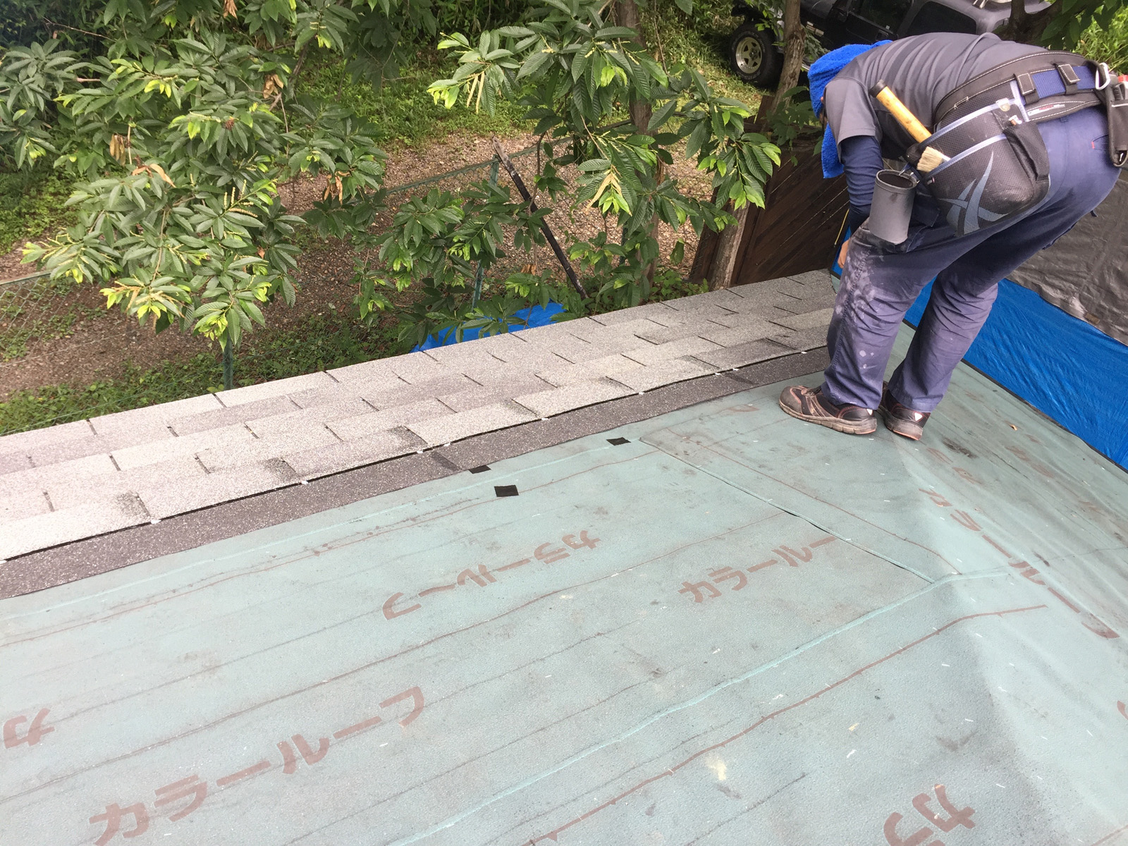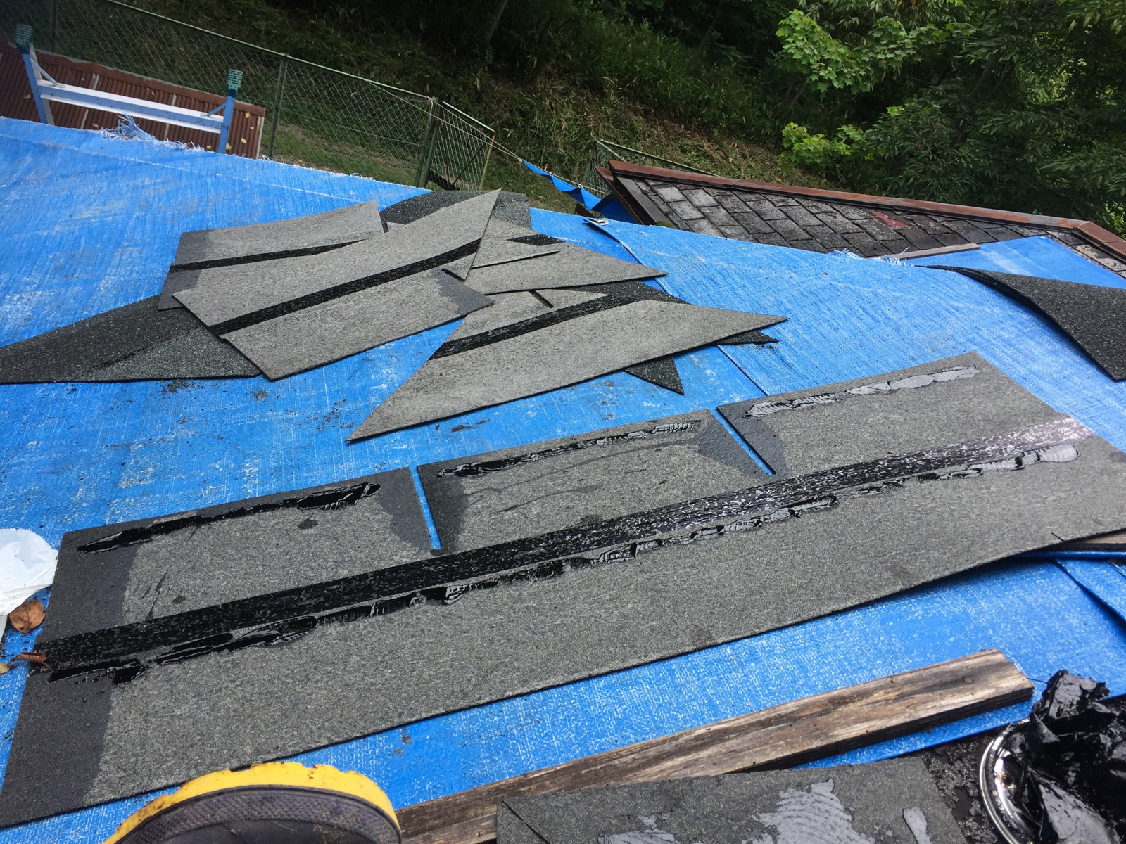 残り2列___ここで、上に運んでた屋根材が終わる、、