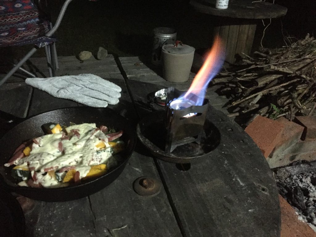 早めに温泉へ行き、雑誌の付録だったステンレス焚き火台__