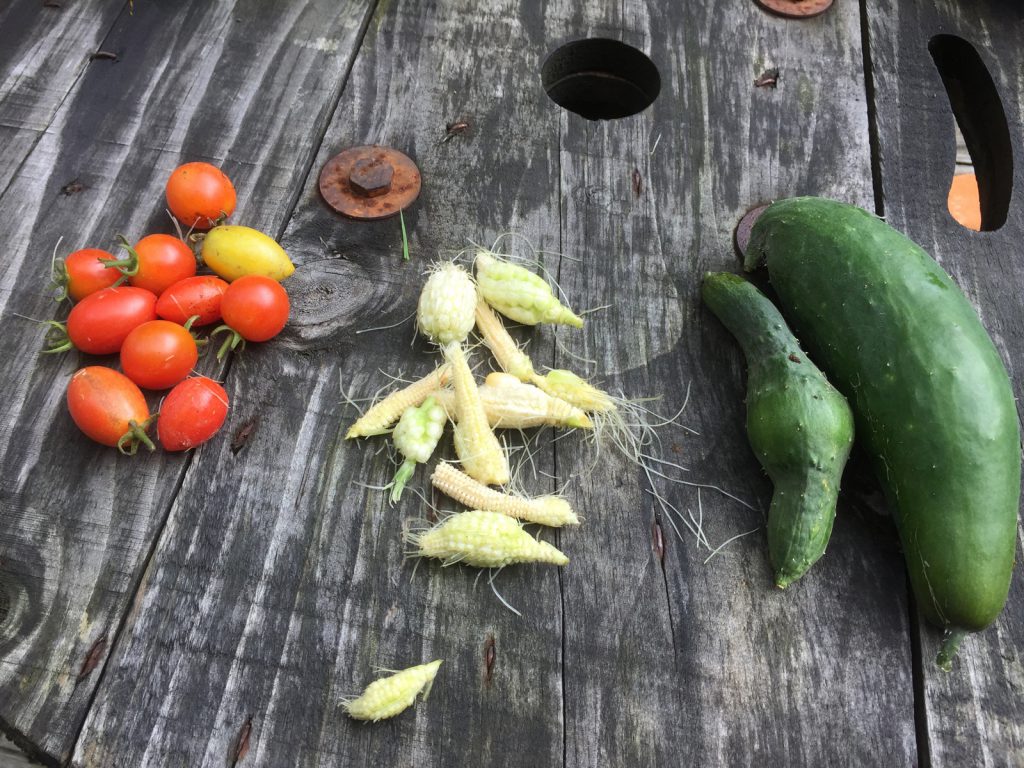 きゅうりの形、おもしろ過ぎだよね(^^;;)<コーンは茹でてもダメでしたぁ..>