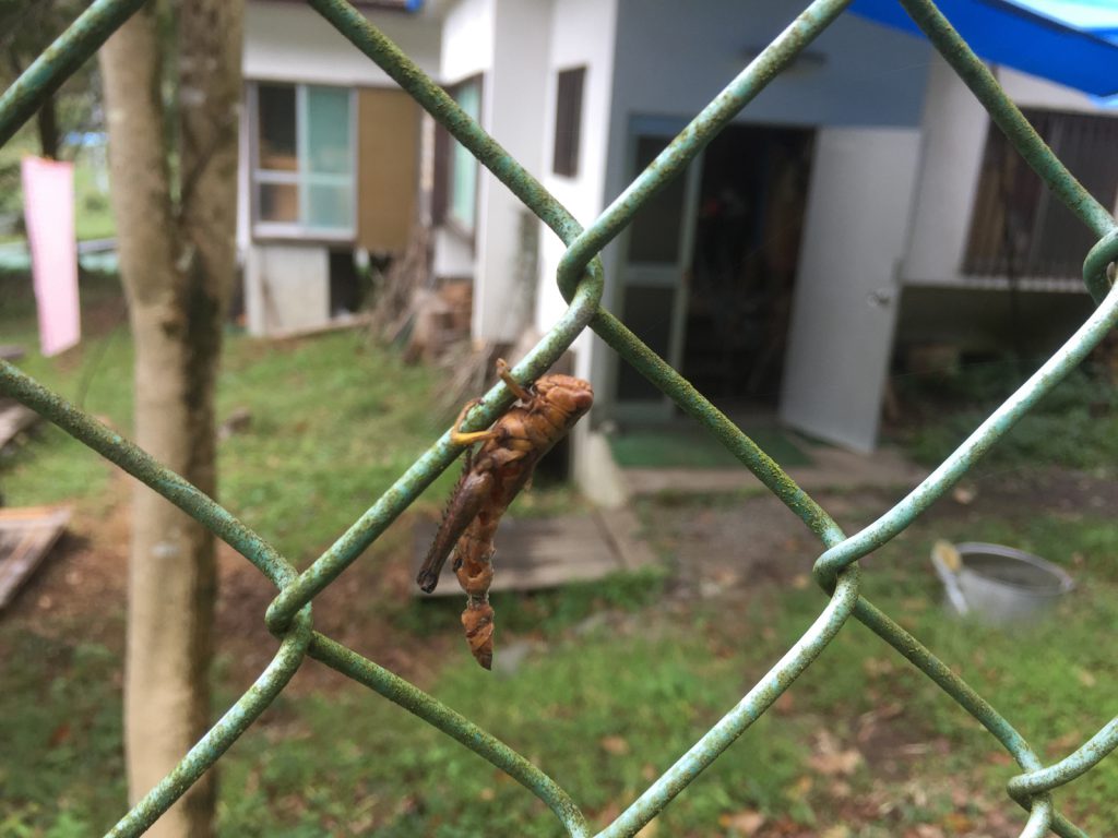 なぜかフェンスに化石となったバッタくん、、、気持ち良く寝てて、そのままだったのかぁ〜..
