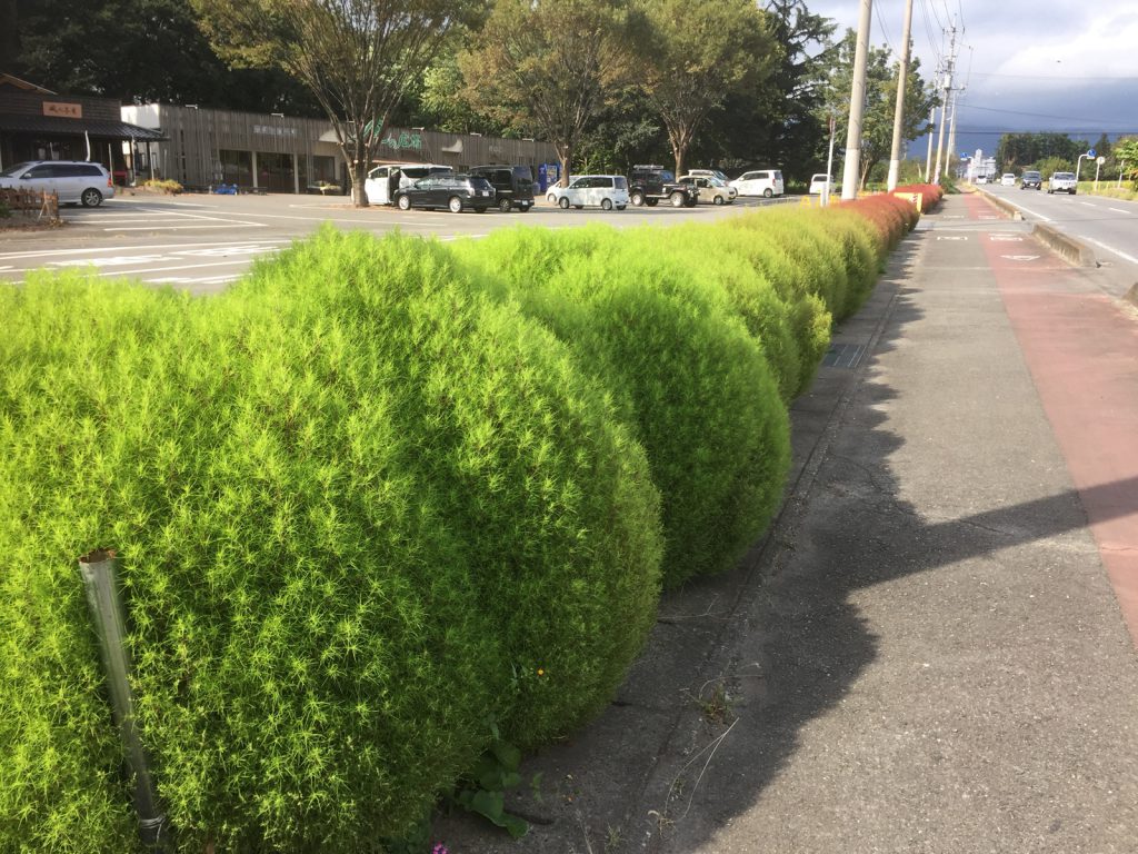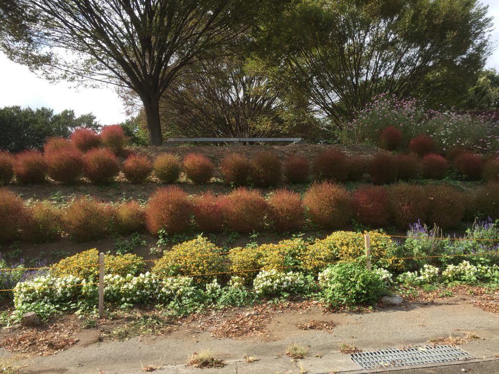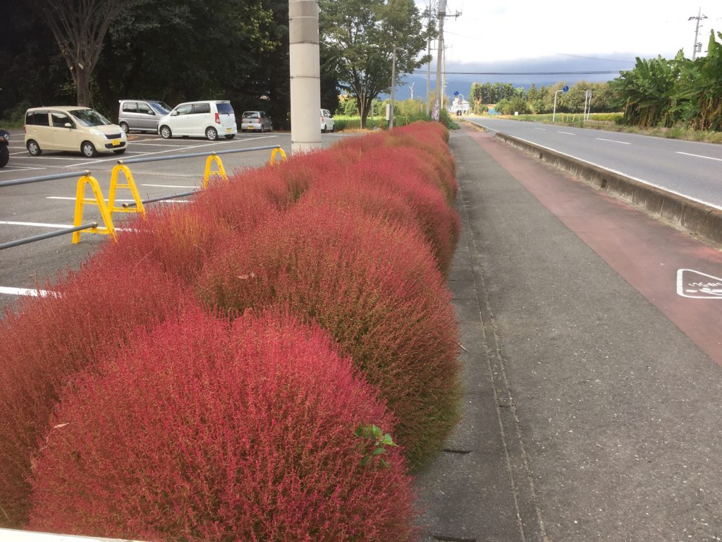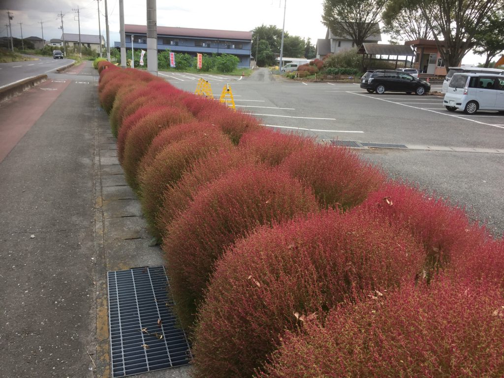 帰りに、風の広場のコキアがやっと色づいてました//