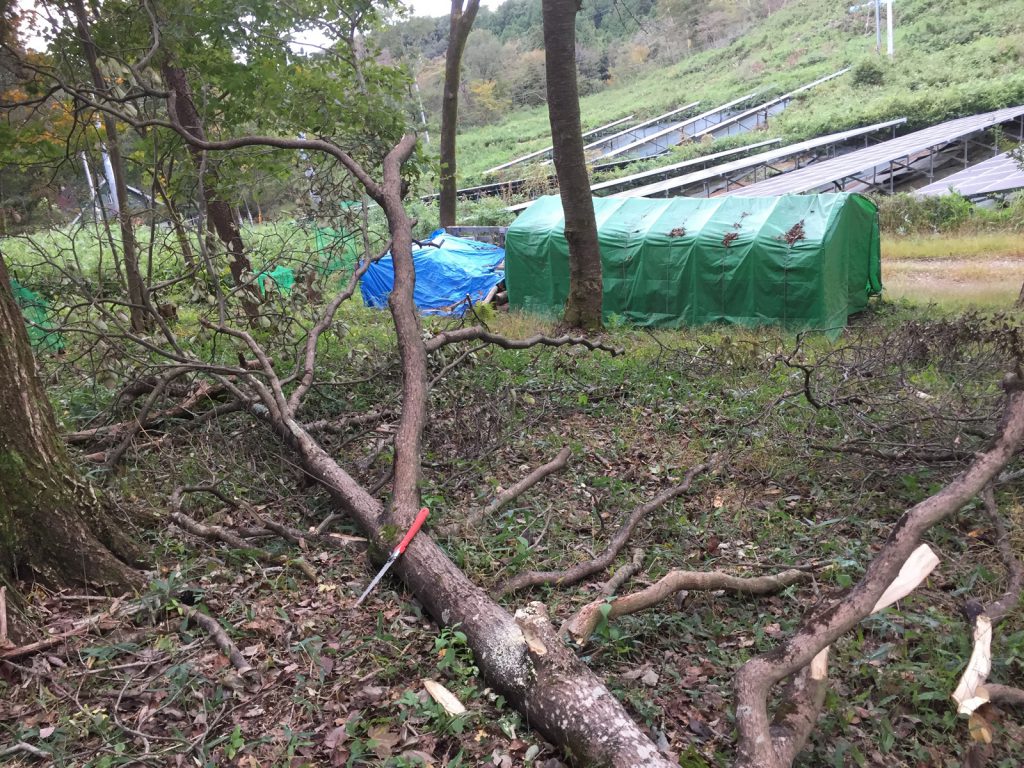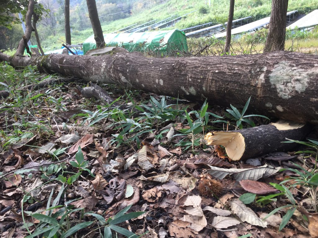 加工を終えて、倒れたコナラを、切ろうとするも、まだ、水分多く、、、、o(´д`)o