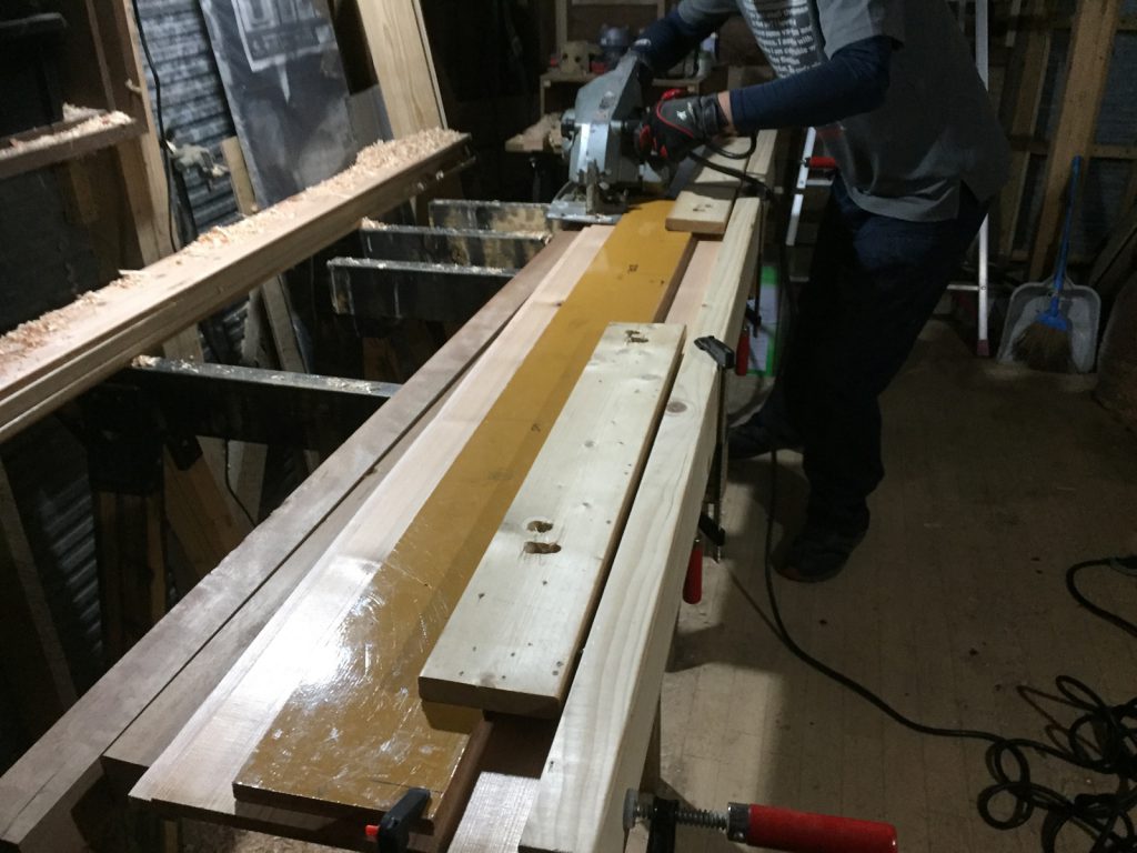 下準備で、ひたすら、板を削ってます〜〜〜//。