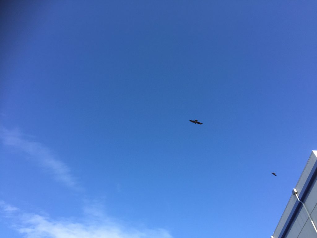 ランチ休憩中、、、上空に鳶が||/( ̄ロ ̄;)\|||