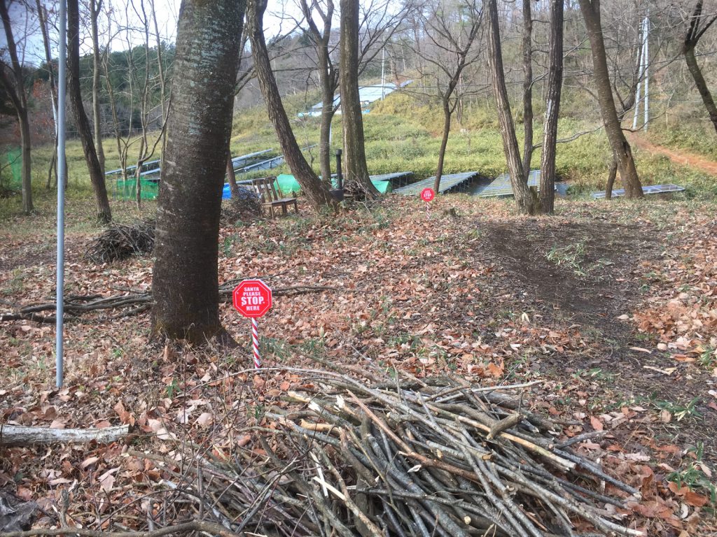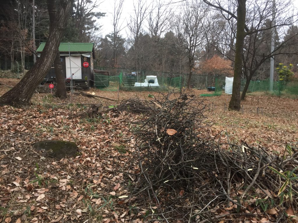 uriは、倒木の枝の片付け中、katsuは奥のビニハウスの手入れと、