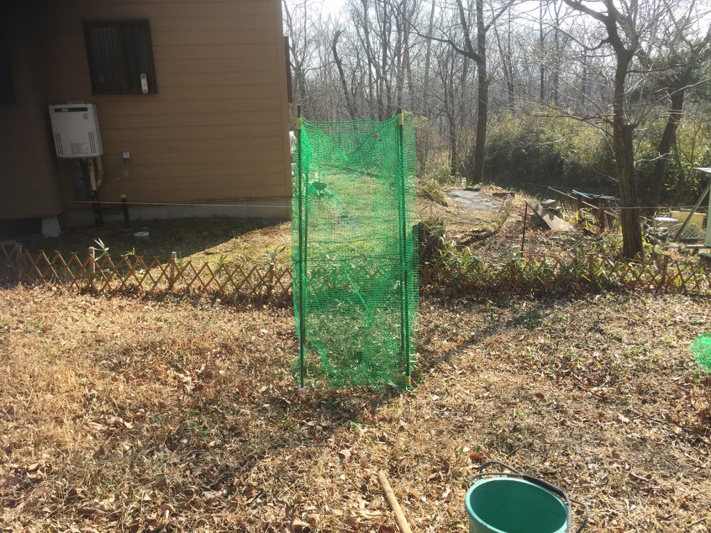 前回買った、南天の苗も植えつけて、囲い完了//。