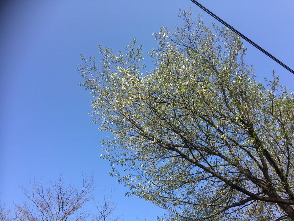 サクラ__、咲いてはいるけど、葉が出ちゃって、、今年はこれで終わり?