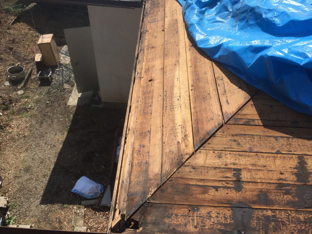 軒先の腐りかけた箇所を、とりあえず剥がして__